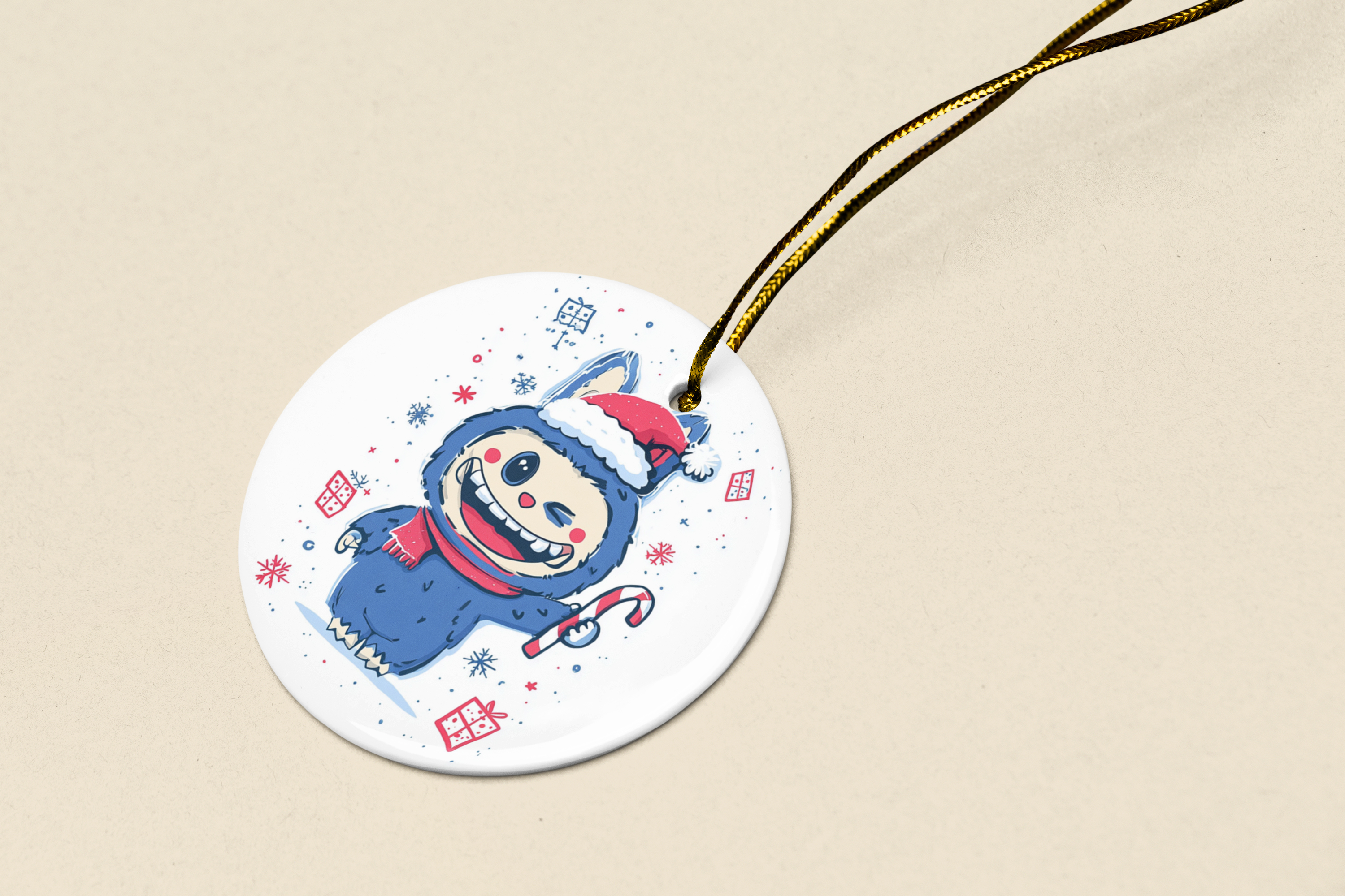 Kawaii Creature Ceramic Xmas Ornament La Bubu Santa Bunny Monster Xmas Holiday