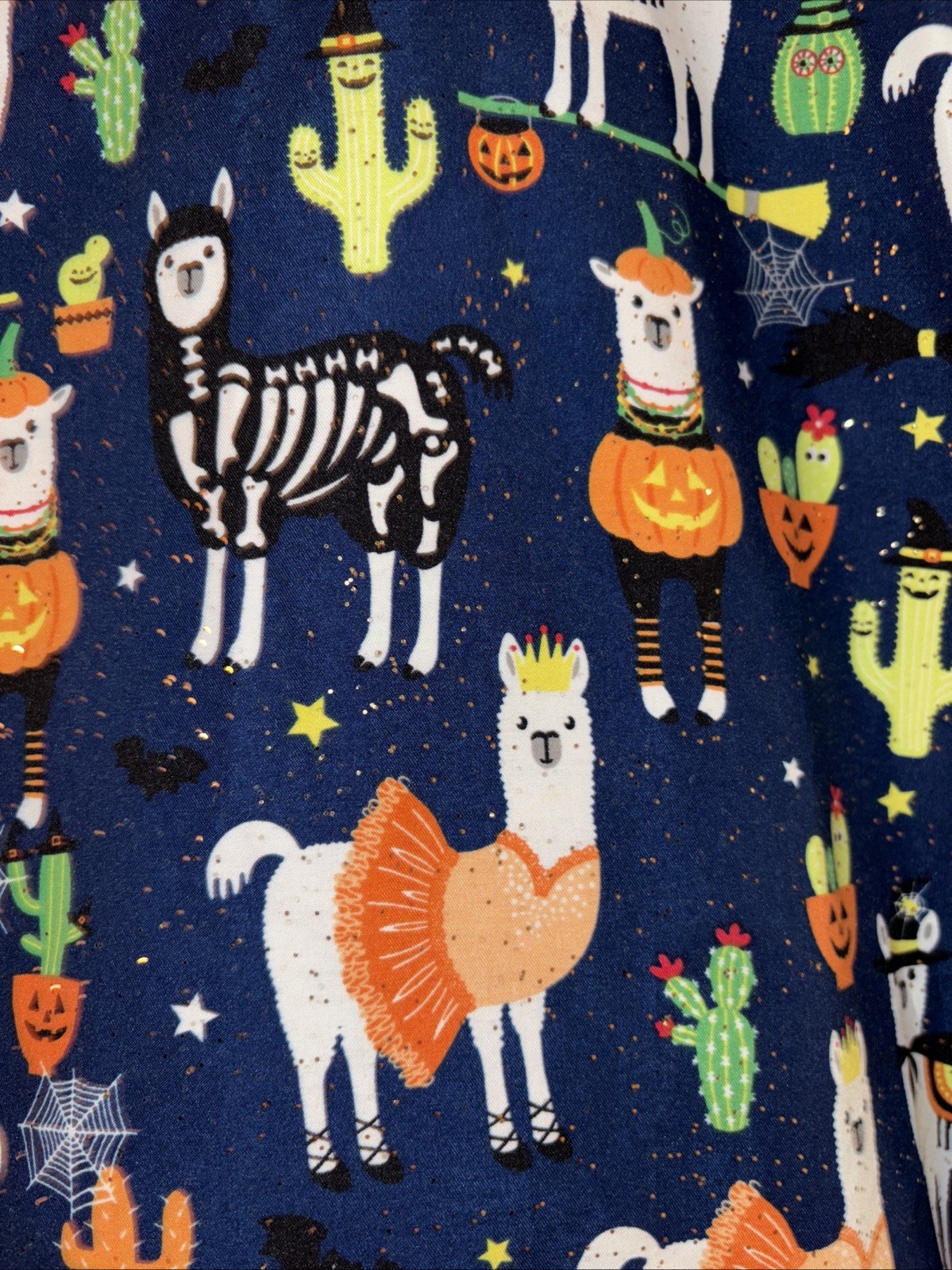 Llamas Halloween Scrub Top by Serene Sparkling Pumpkins Polyester Womens Small