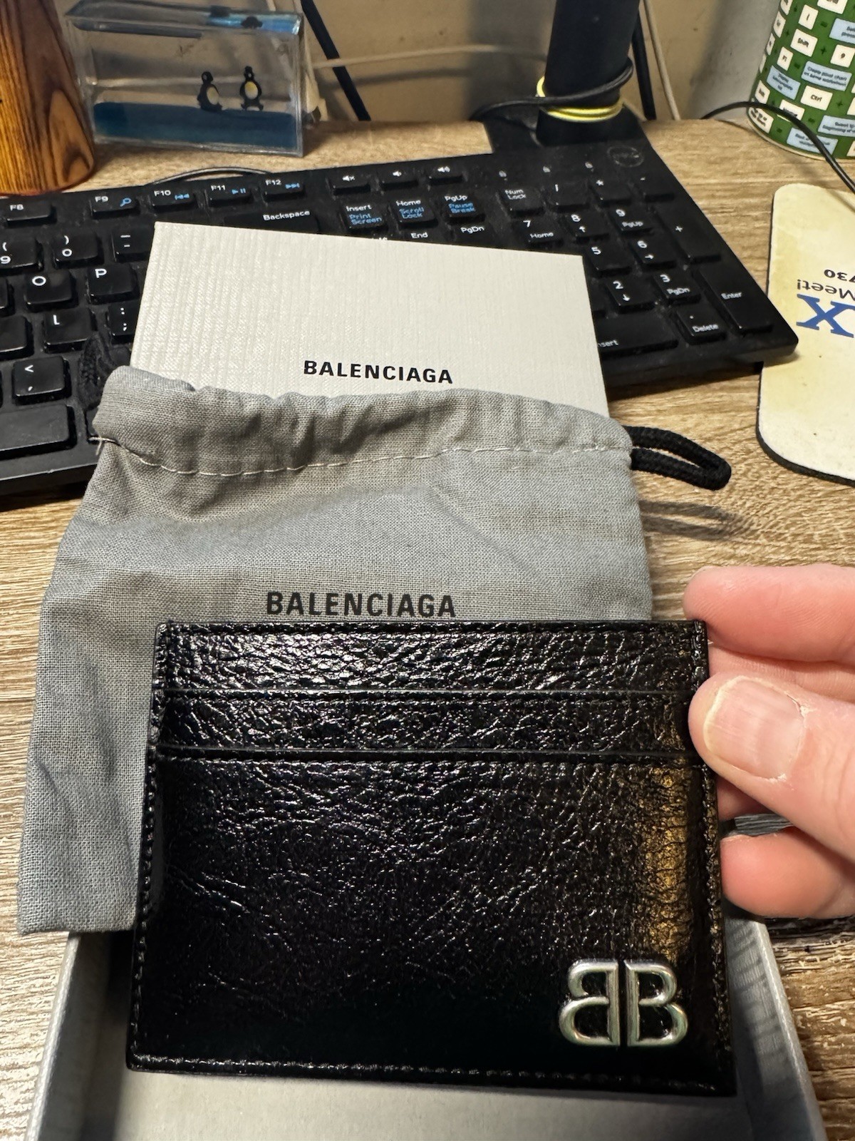 как выглядит Balenciaga Brand Logo Leather Card Wallet Regular Mens Black BRAND NEW фото