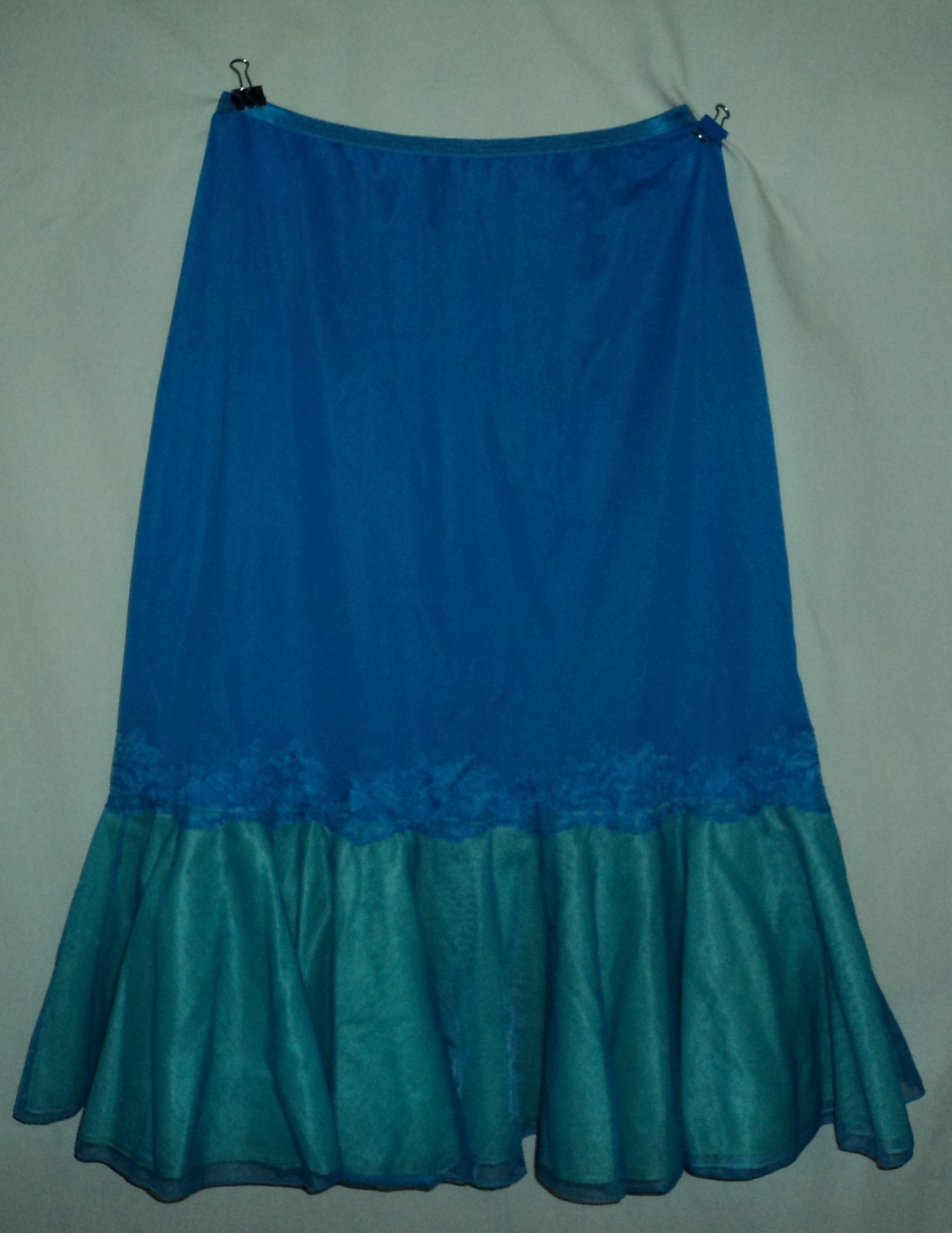 как выглядит VINTAGE VANITY FAIR ROYAL BLUE WITH LACE RUFFLE SLIP 314 фото