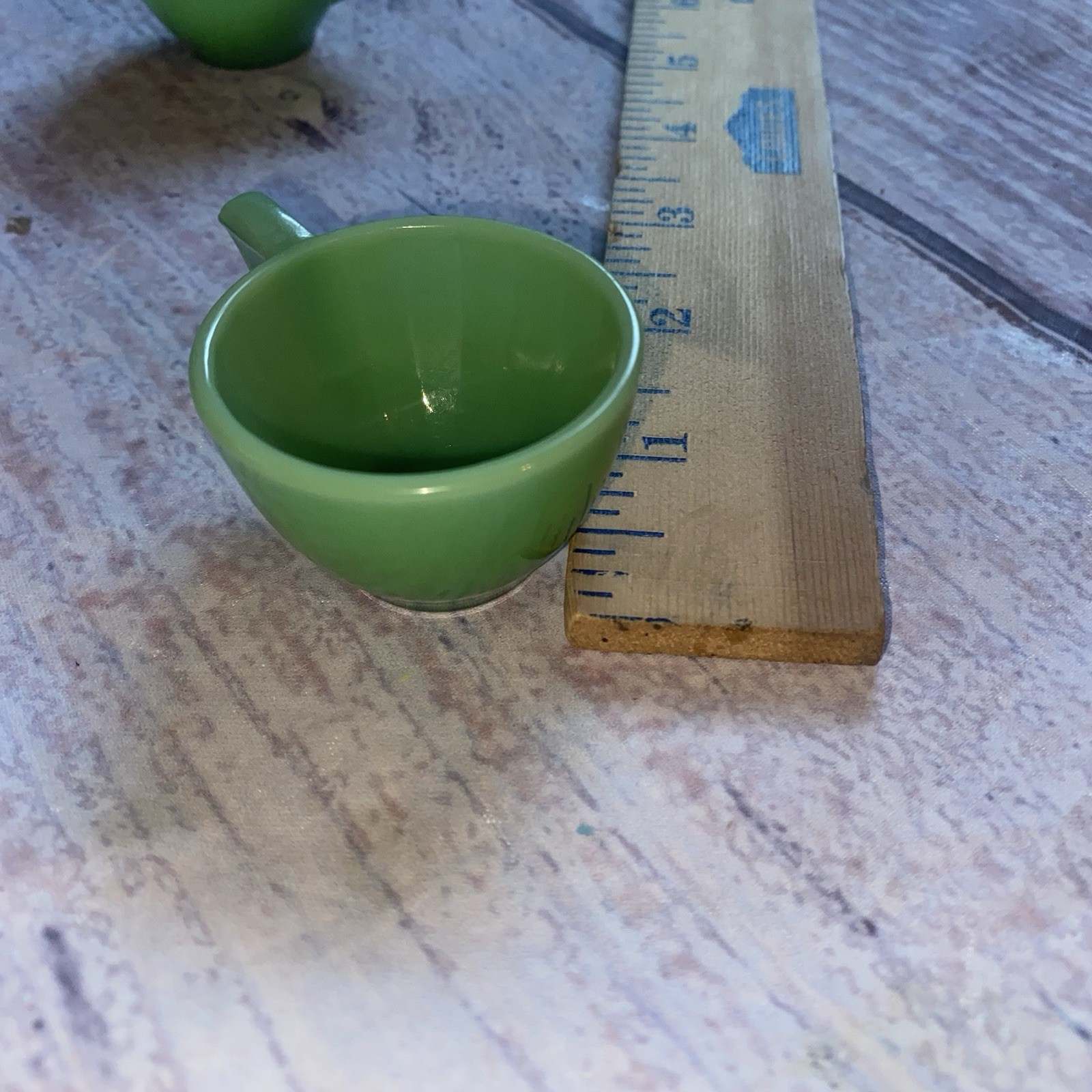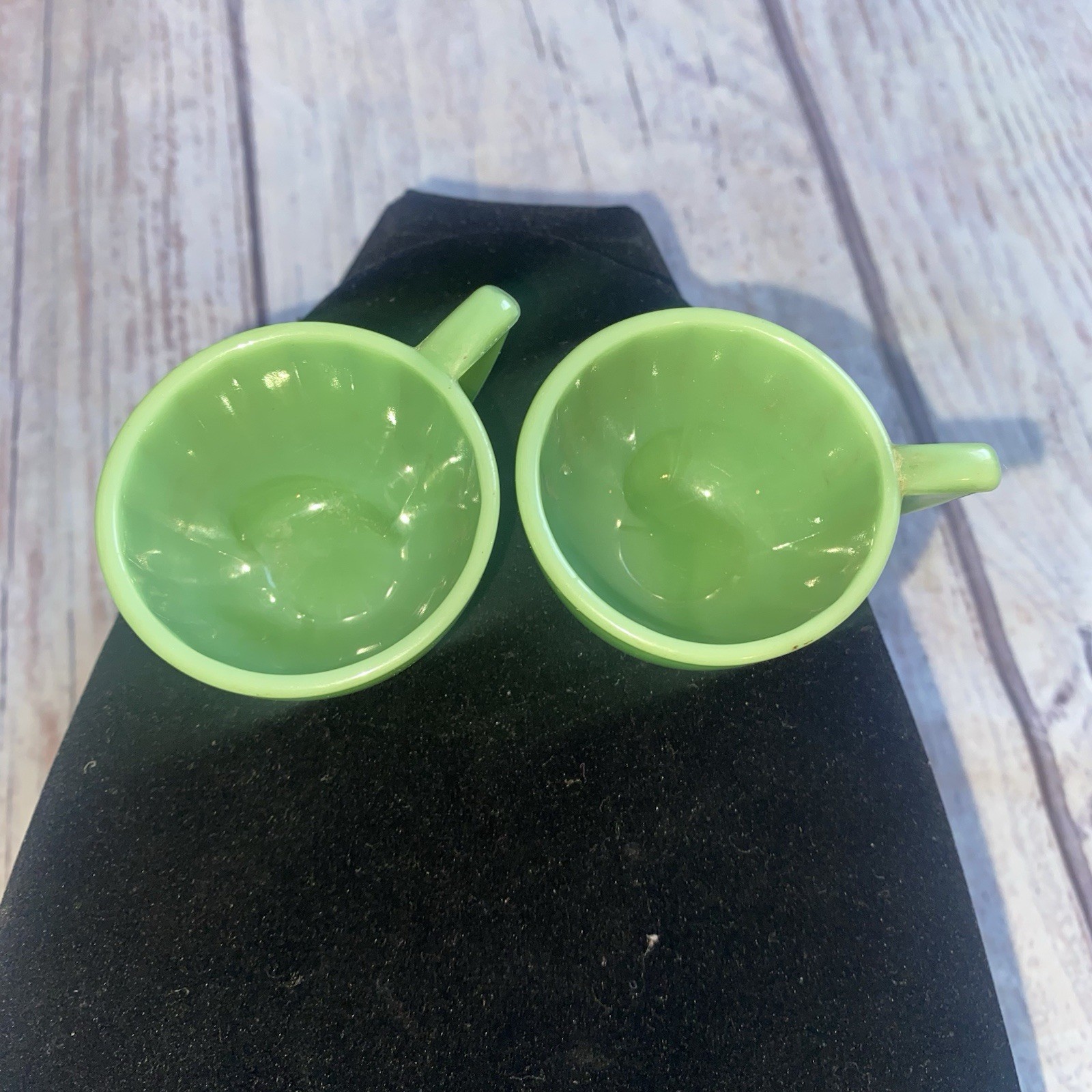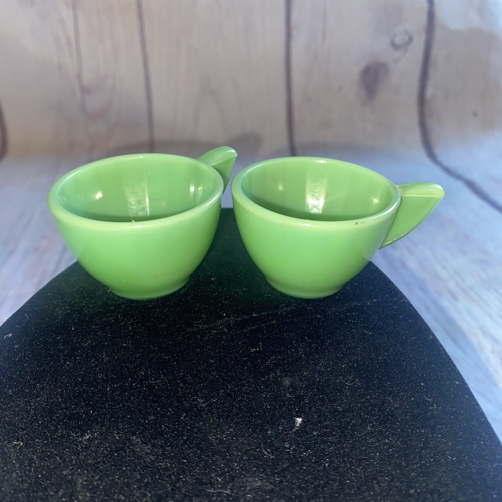 Mid Century Akro Agate Jadeite Childs Tea Cups 2 Green