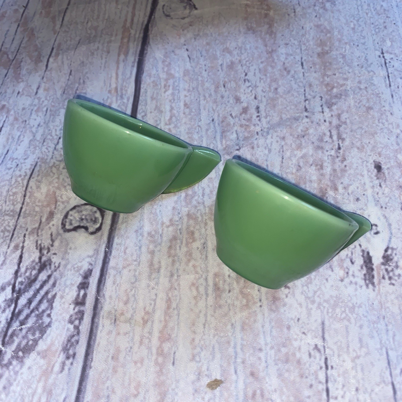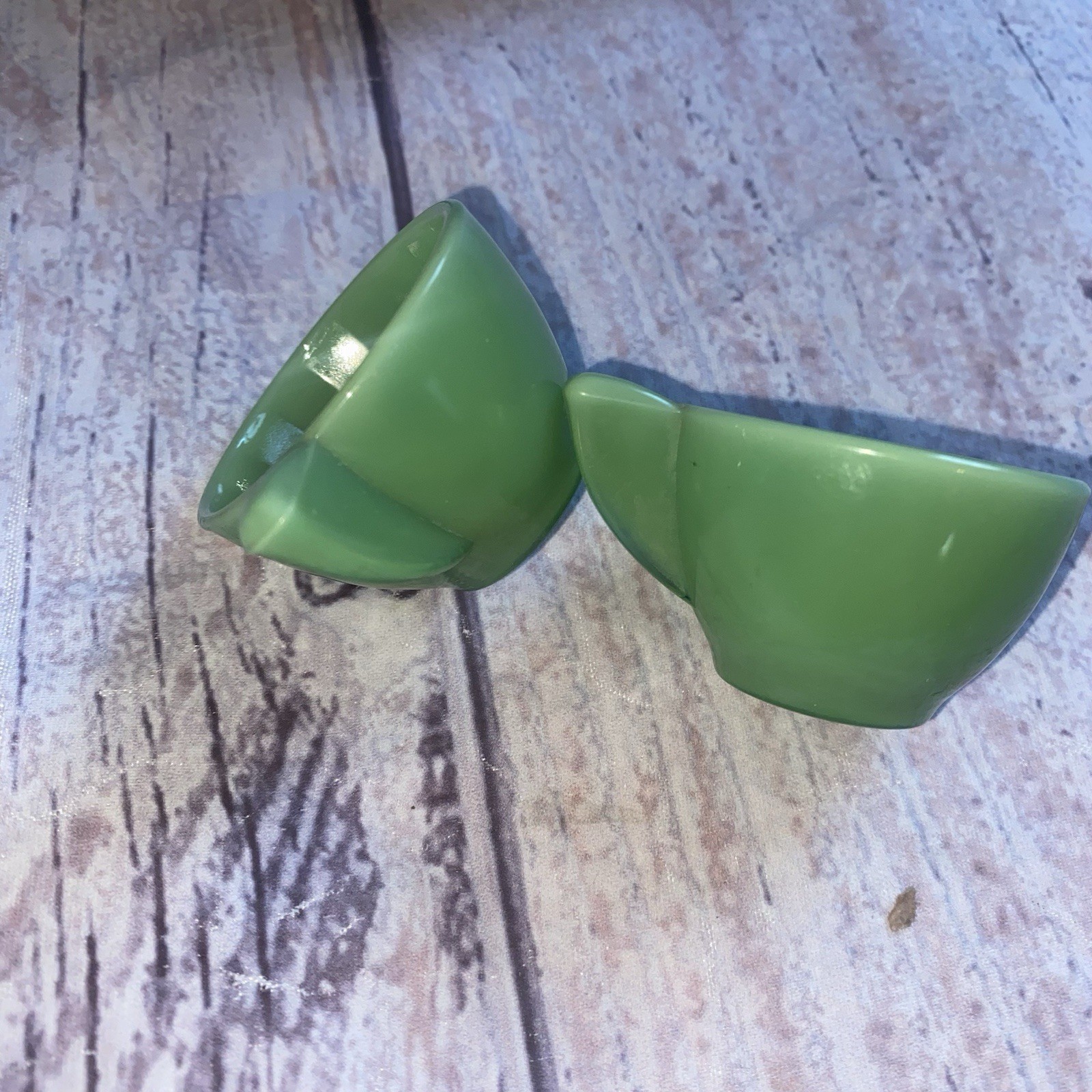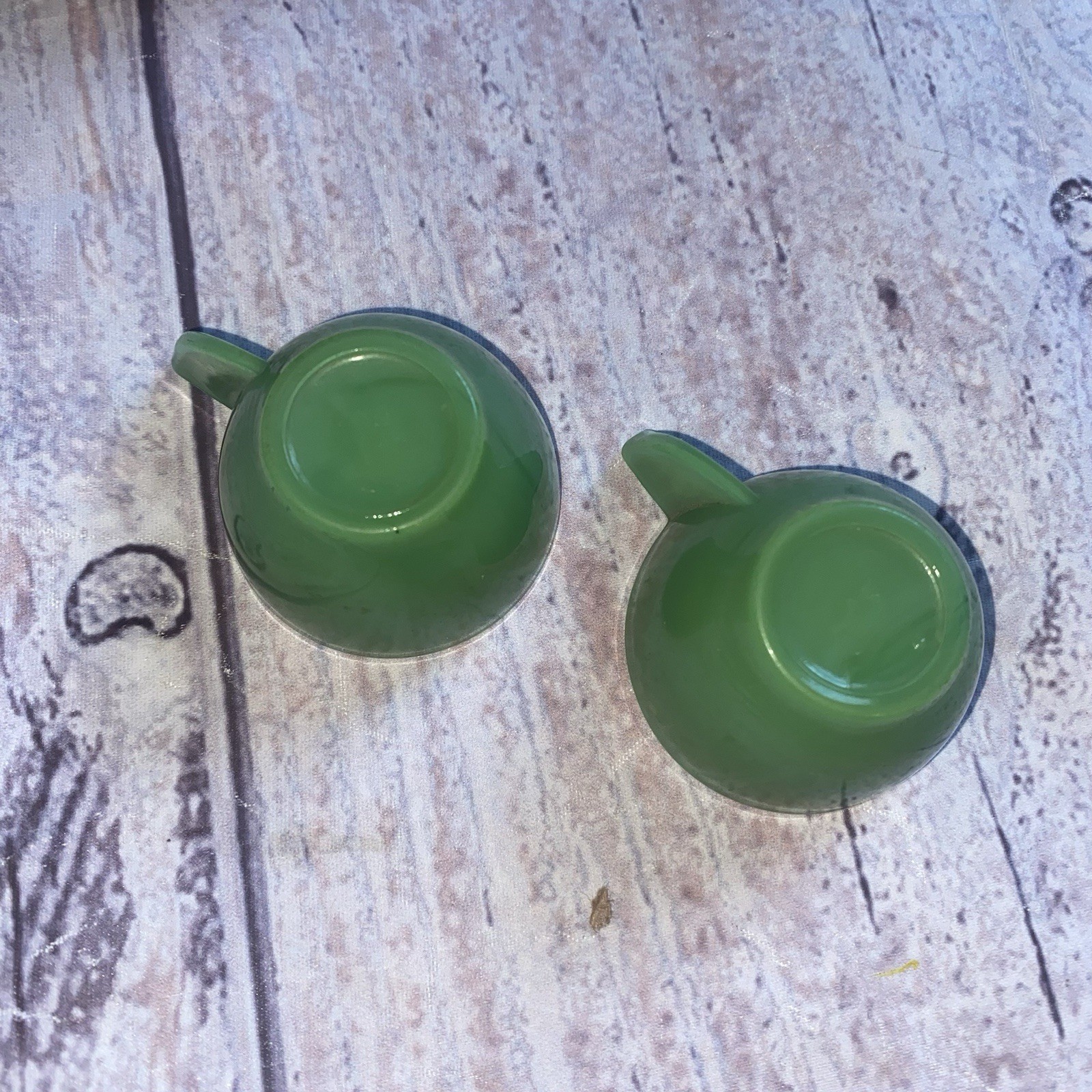 Mid Century Akro Agate Jadeite Childs Tea Cups 2 Green