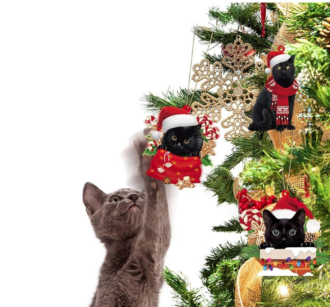 Black Cat Christmas Ornament Black Cat Xmas Decor Tree Hanging Collectible CRS24
