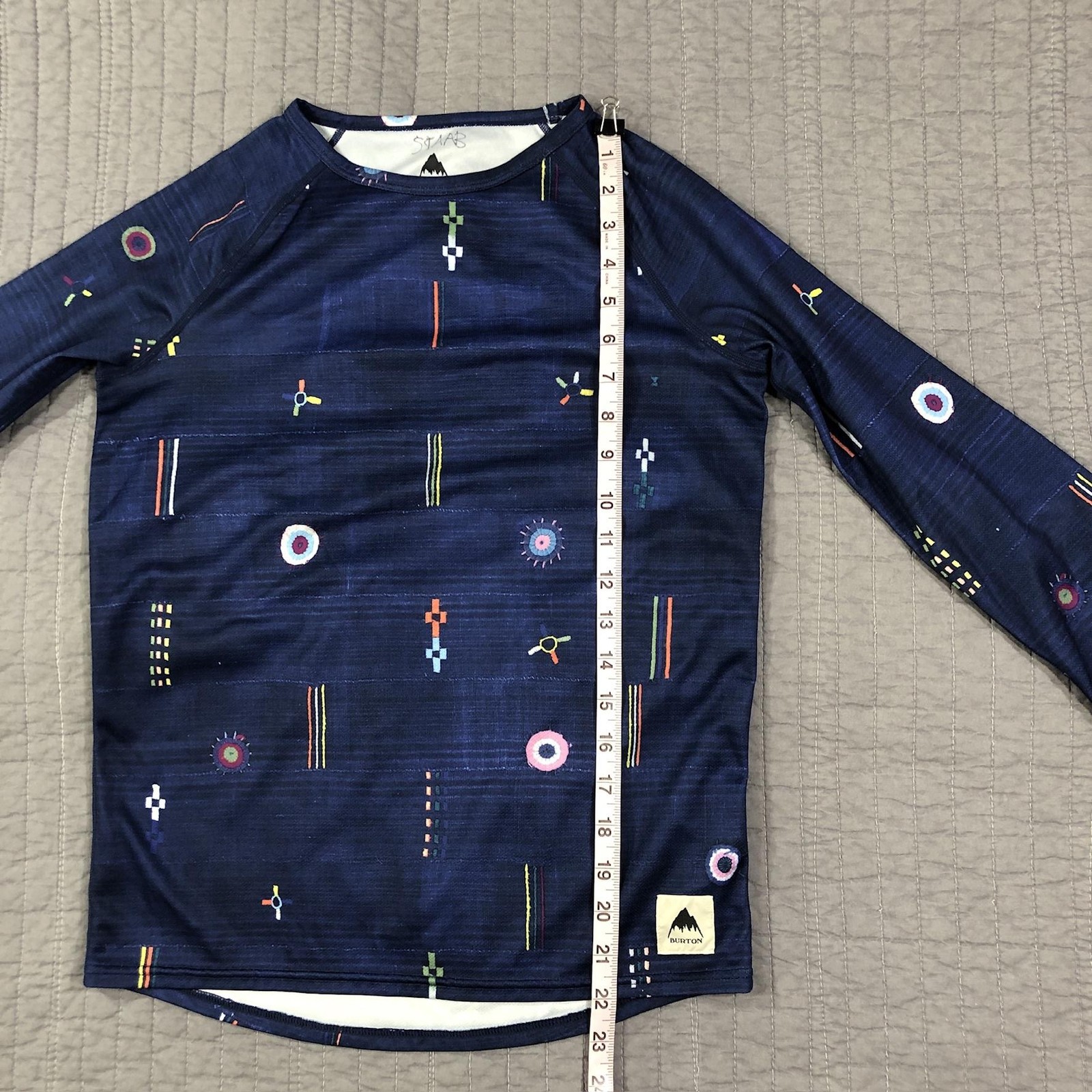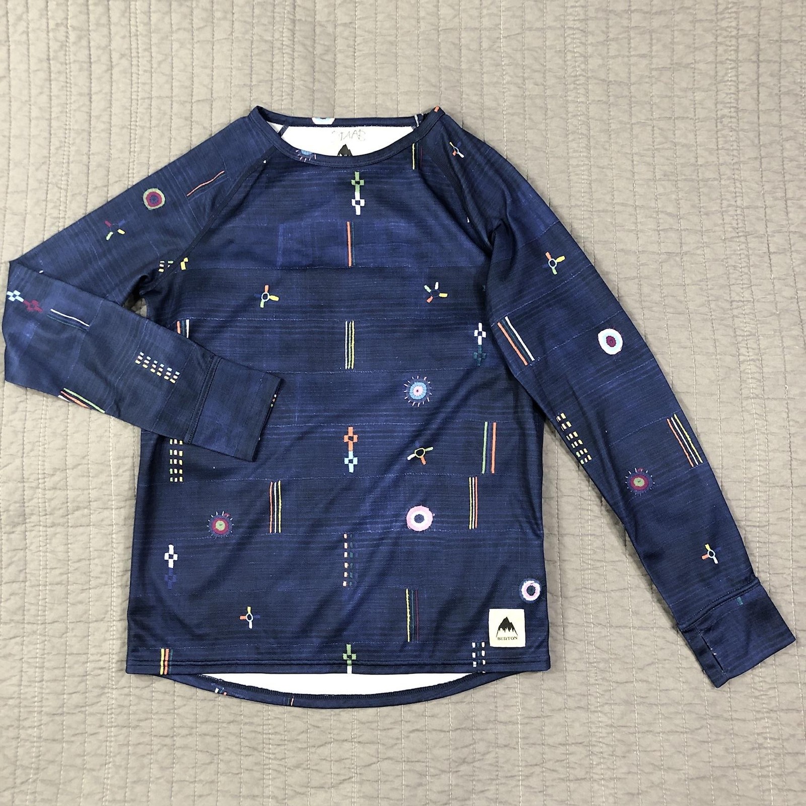 Burton Shirt Youth Boy Large Blue DRYRIDE Base Layer Snow Ski Western Geometric