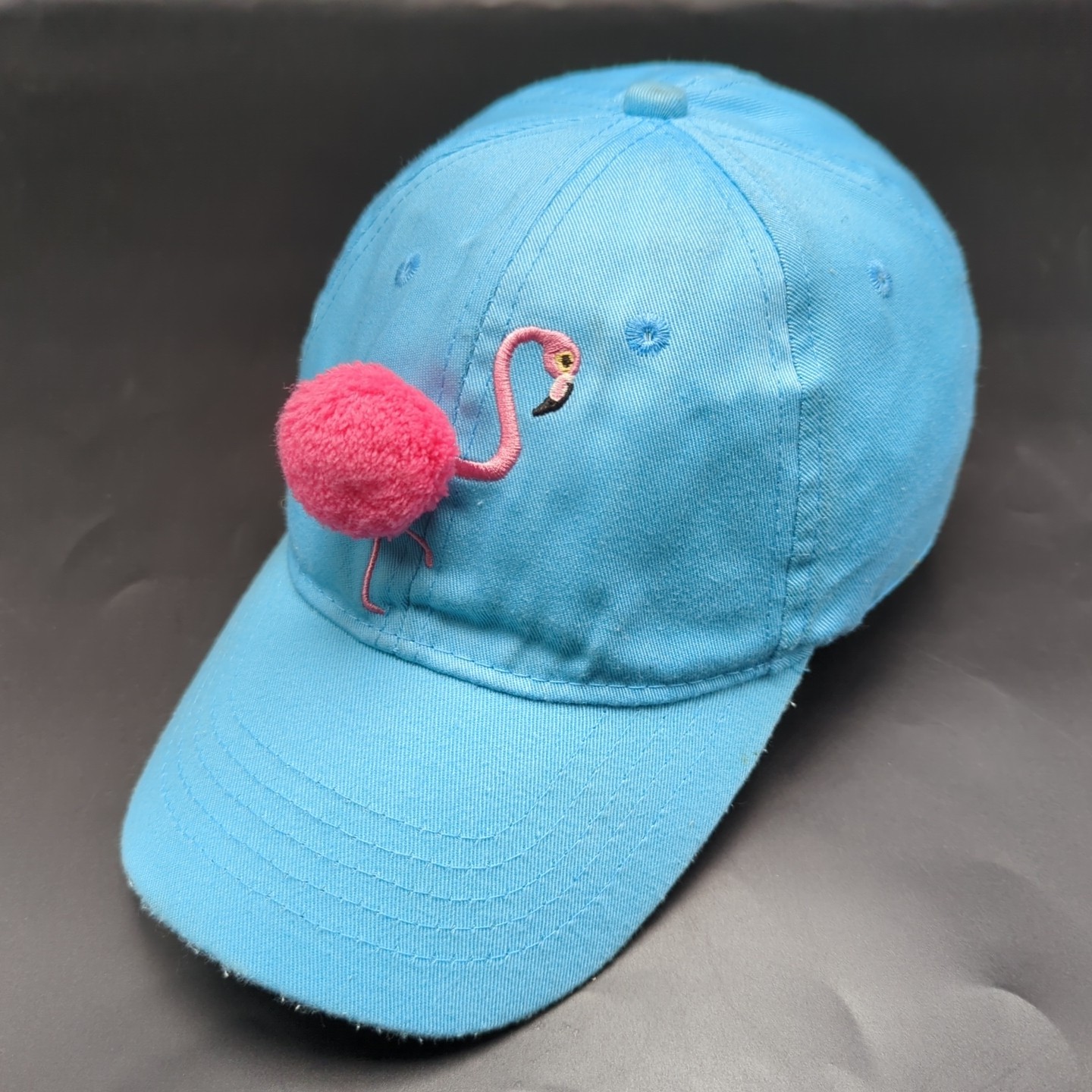 как выглядит Pink Flamingo hat blue adjustable cap - Child / youth size фото
