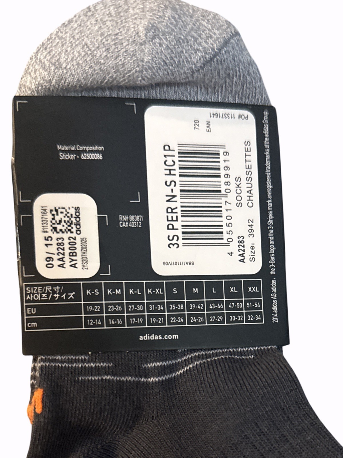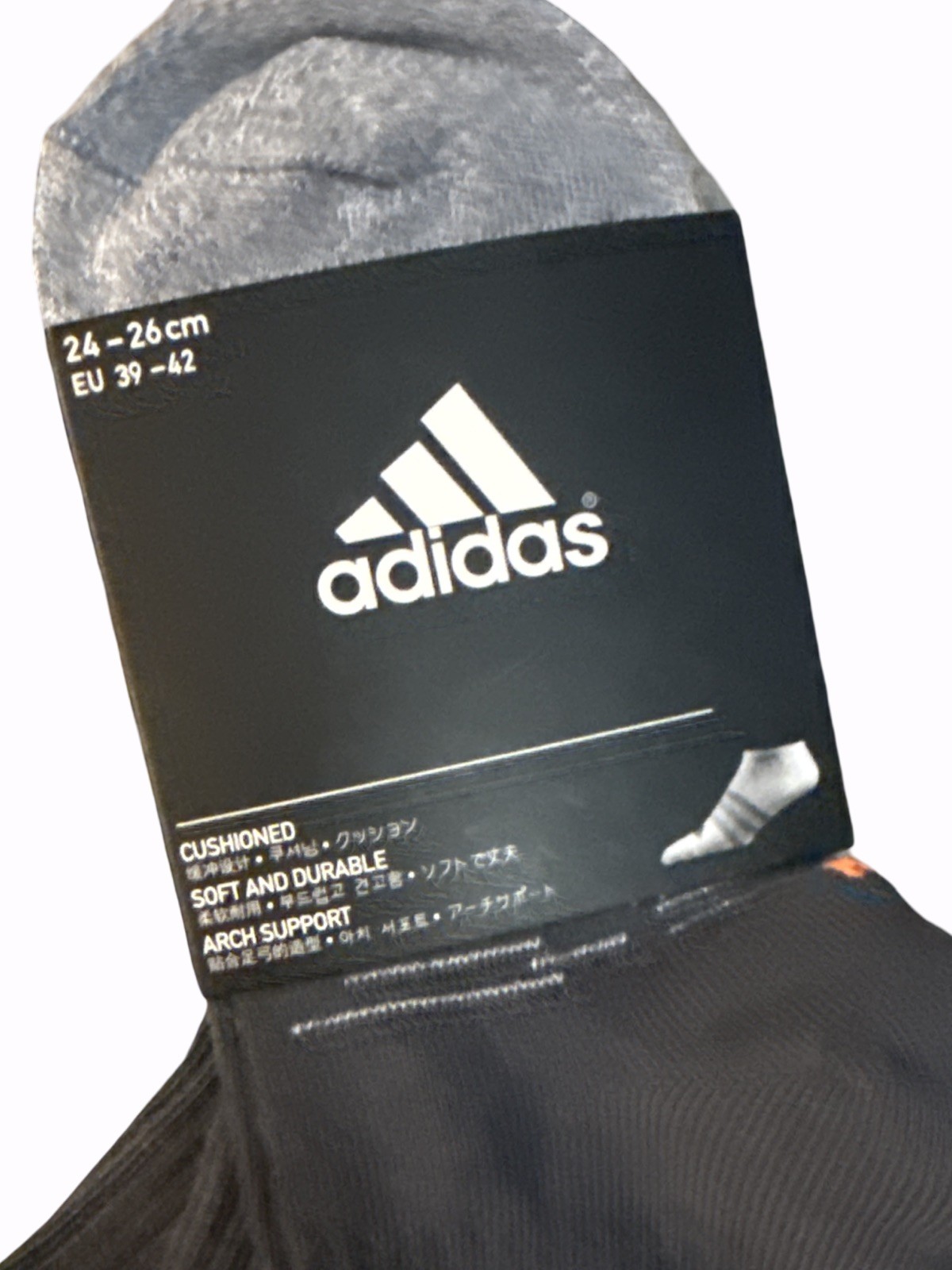 как выглядит adidas YOUTH/MEN Socks 3-Pack Dark Gray/Gray w/ Bright Orange Logo Sz 6-8 NWT фото