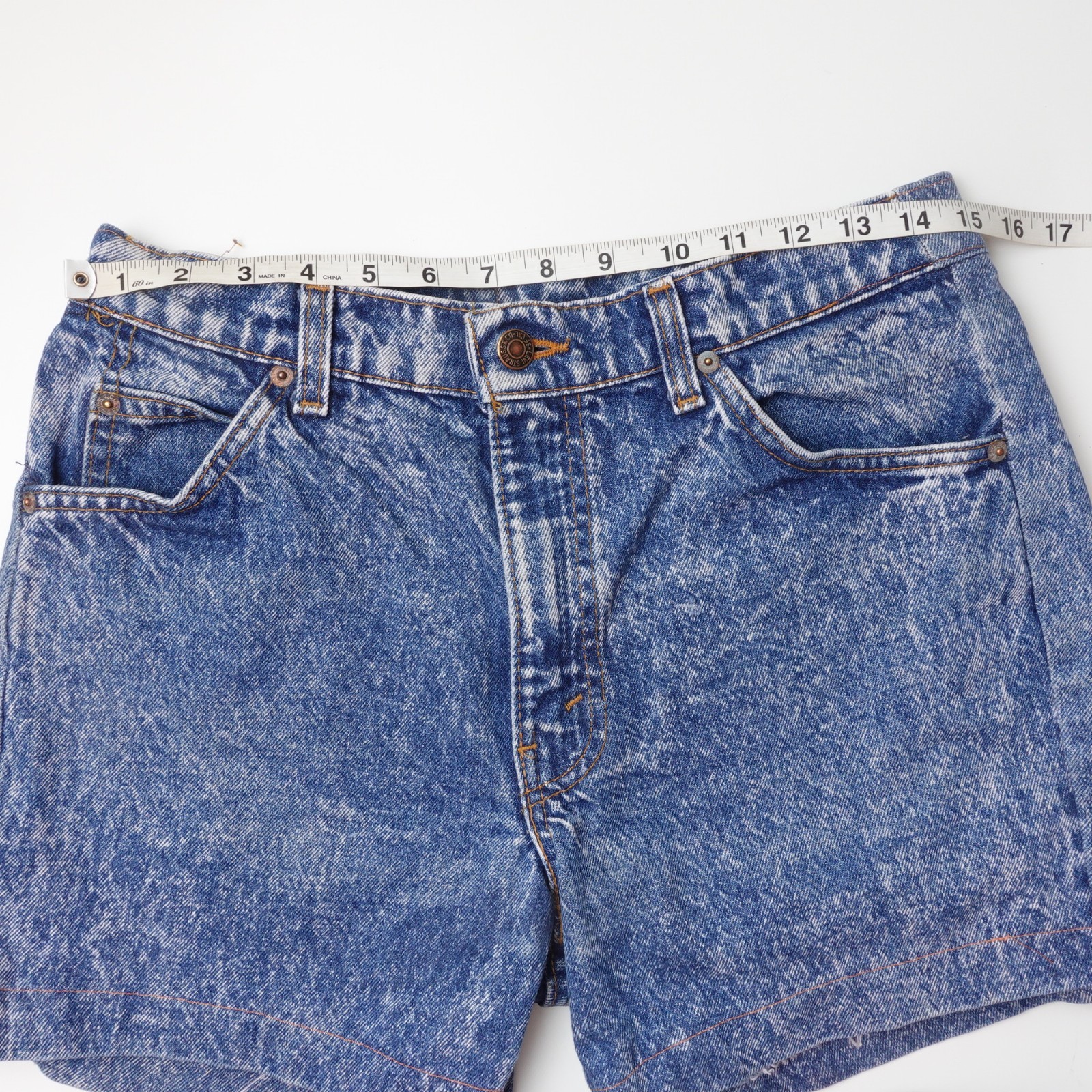 как выглядит Vintage 70s Levis Orange Tab Denim Jean Shorts Size 30 4" Inseam Blue Acid Wash фото