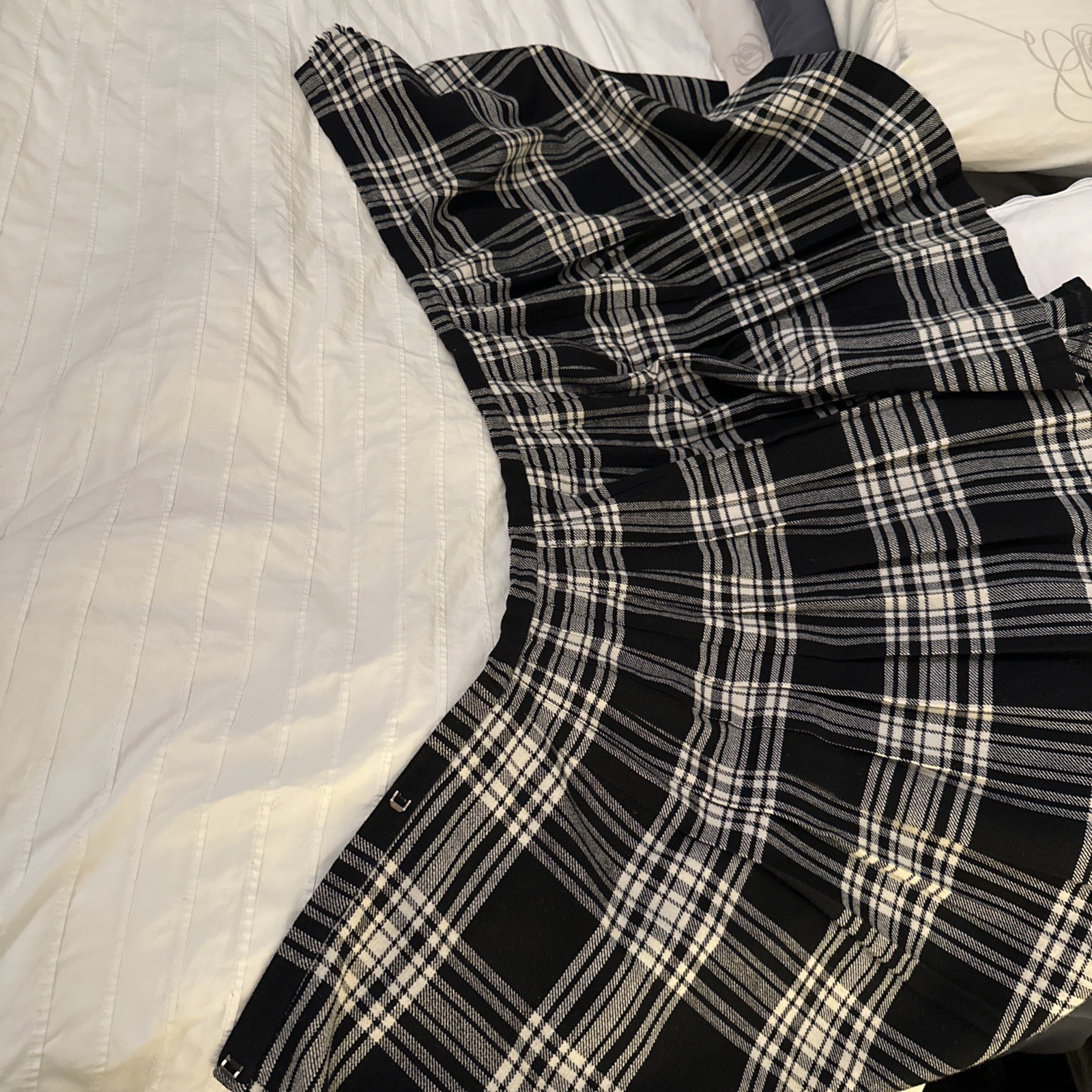 Vintage St Michael Black And White Plaid Kilt Skirt Wool