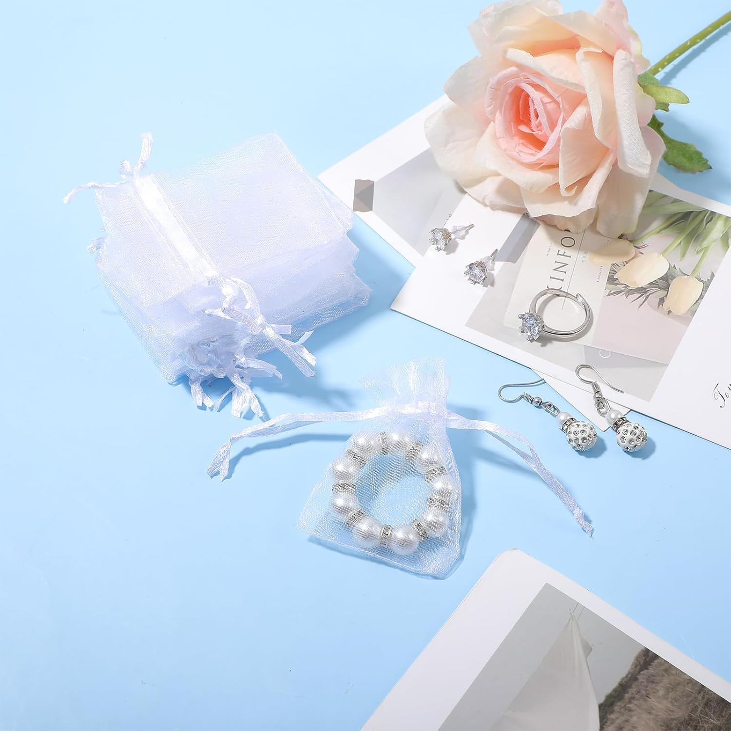 100PCS Small Mesh Bags Drawstring 2X3 Inch White Organza Bags, Little Sheer Jewe