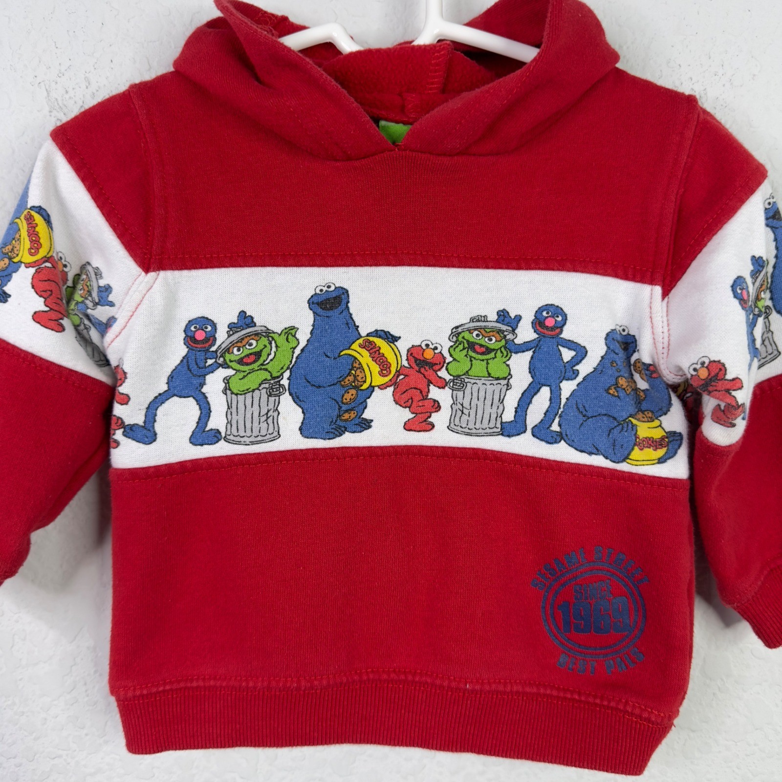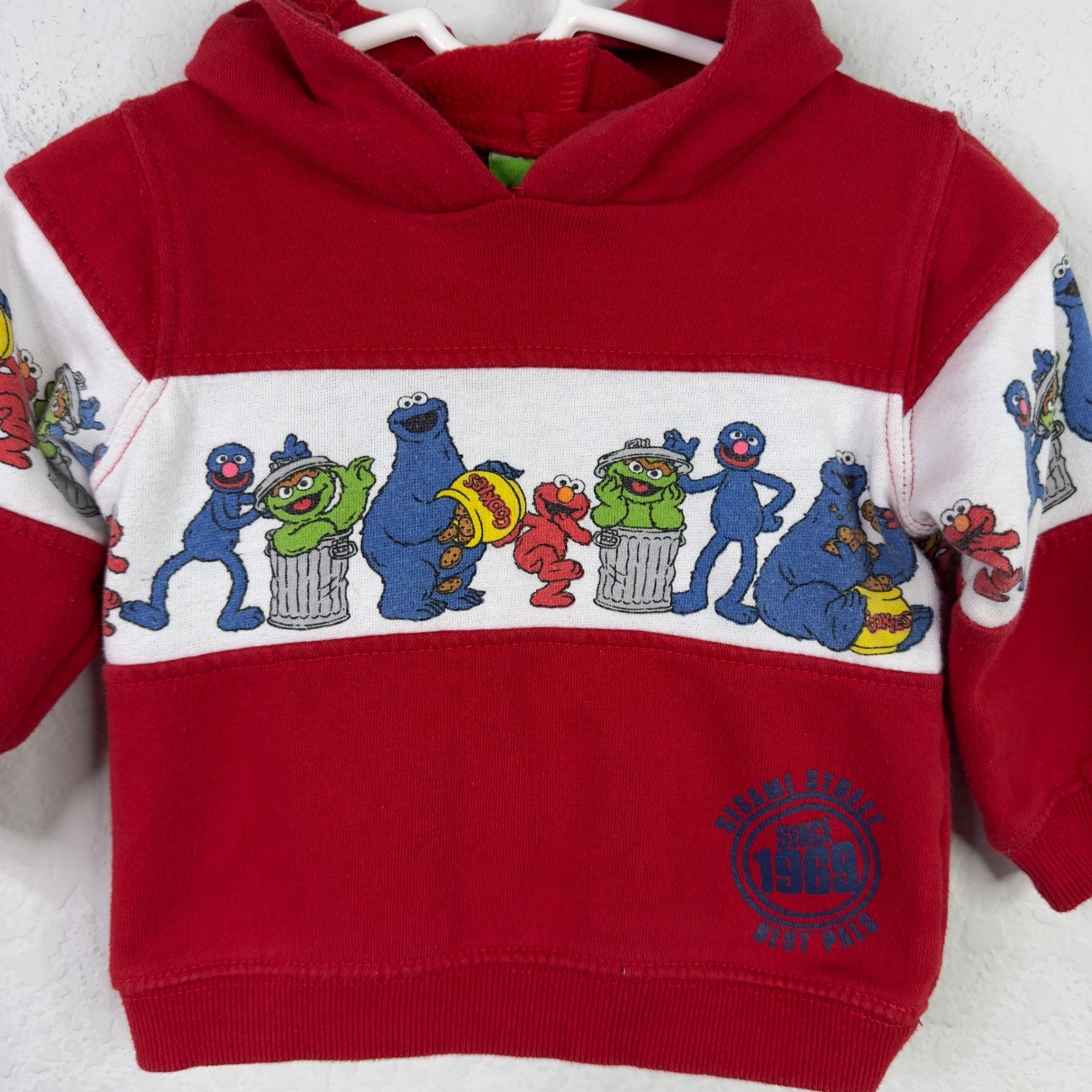 Vintage Sesame Street Hoodie Kids 12M Red Cartoon Oscar Elmo Cookie Monster Y2K