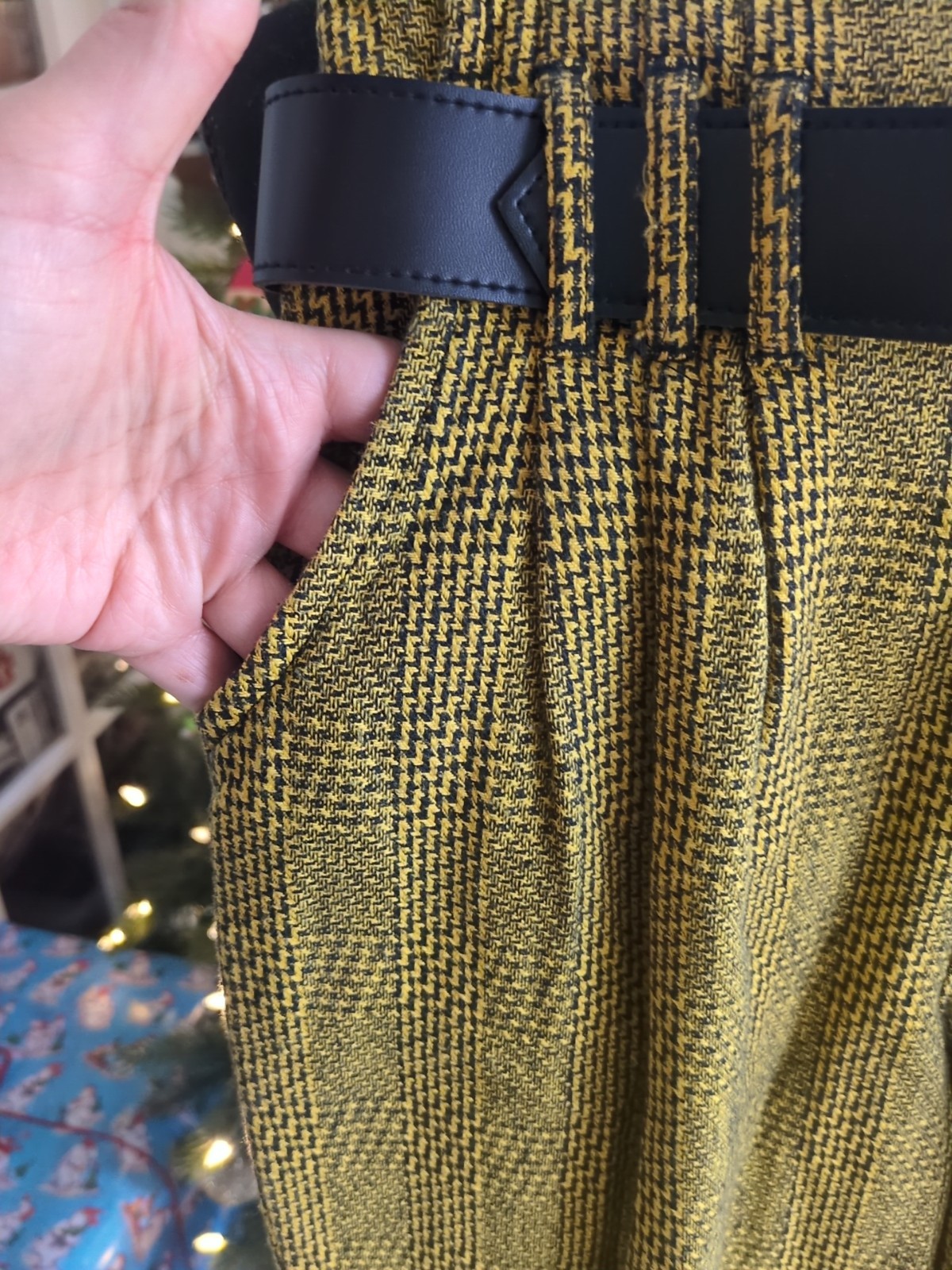 как выглядит VTG 90s I.O.U Houndstooth Highwaisted Pants With Belt, Women