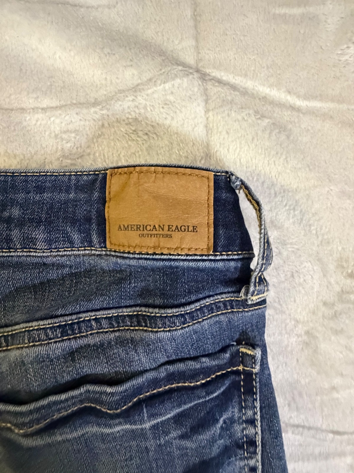 как выглядит American Eagle Jeans Womens 00 Blue Super Stretch Low Jegging Dark Wash Denim фото