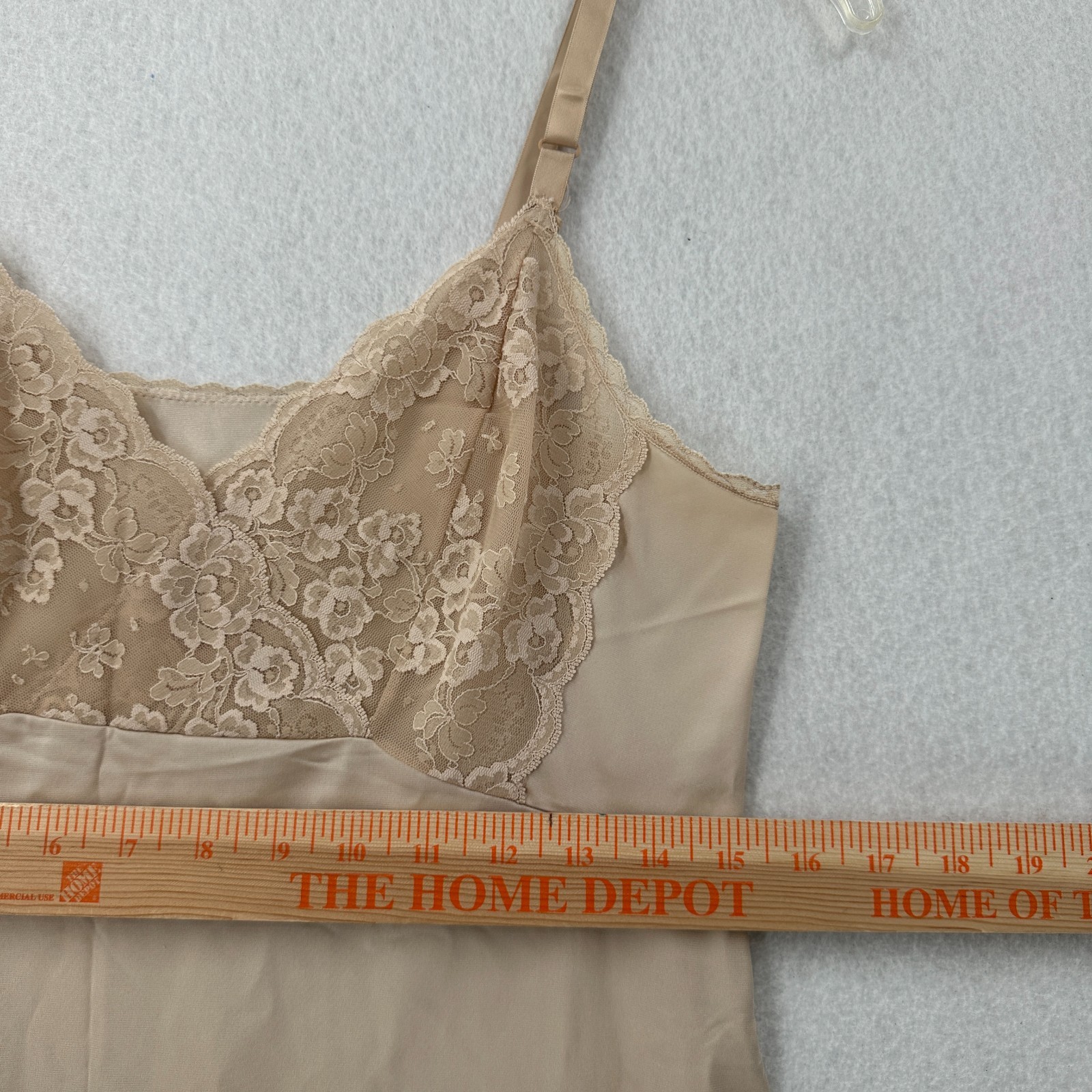 ShadowLine Floral Lace Trim Full Slip Nightgown Beige Womens 36 Tall Nylon Vtg
