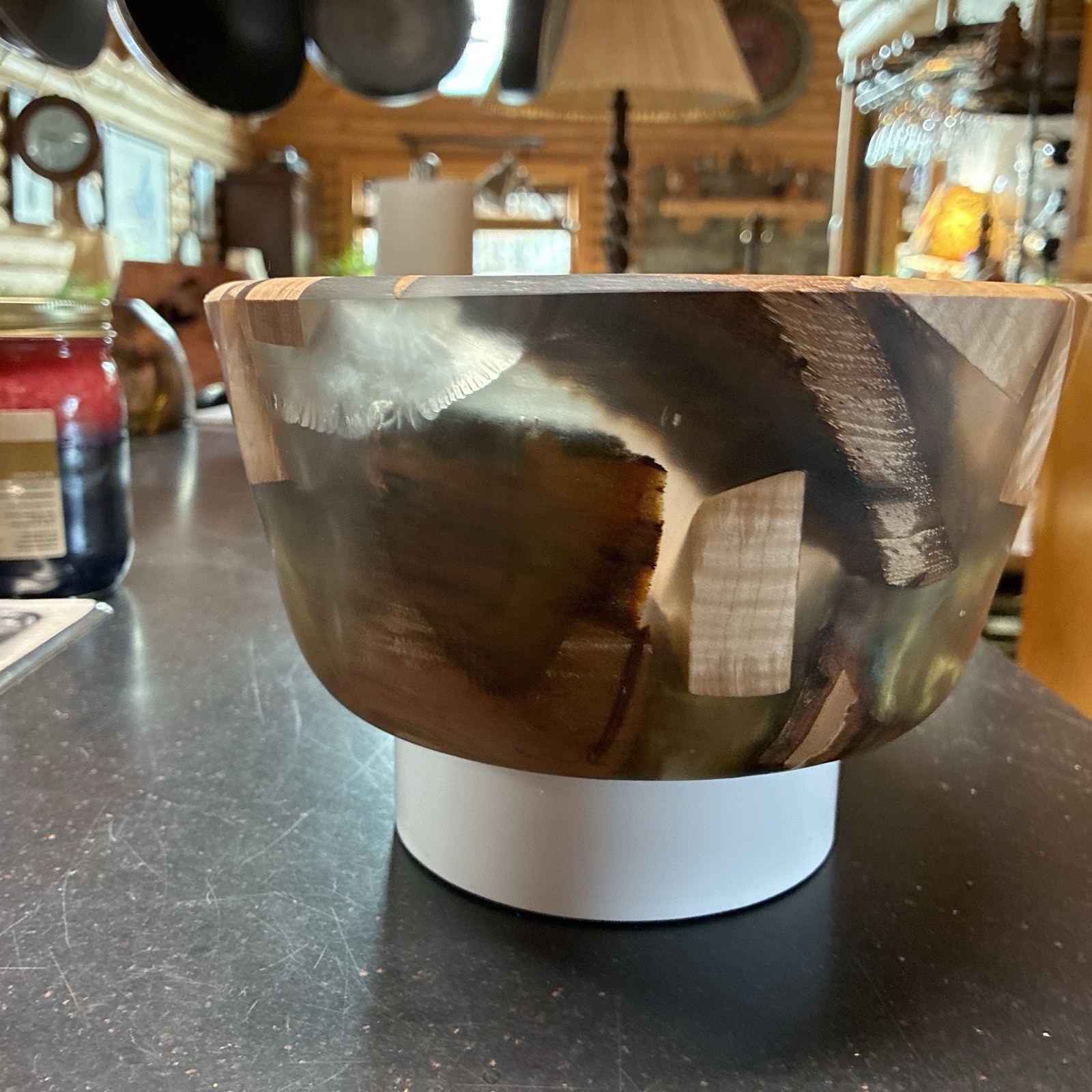 Wood And Resin Bowl, 8 3/8 Wide X 4 Tall