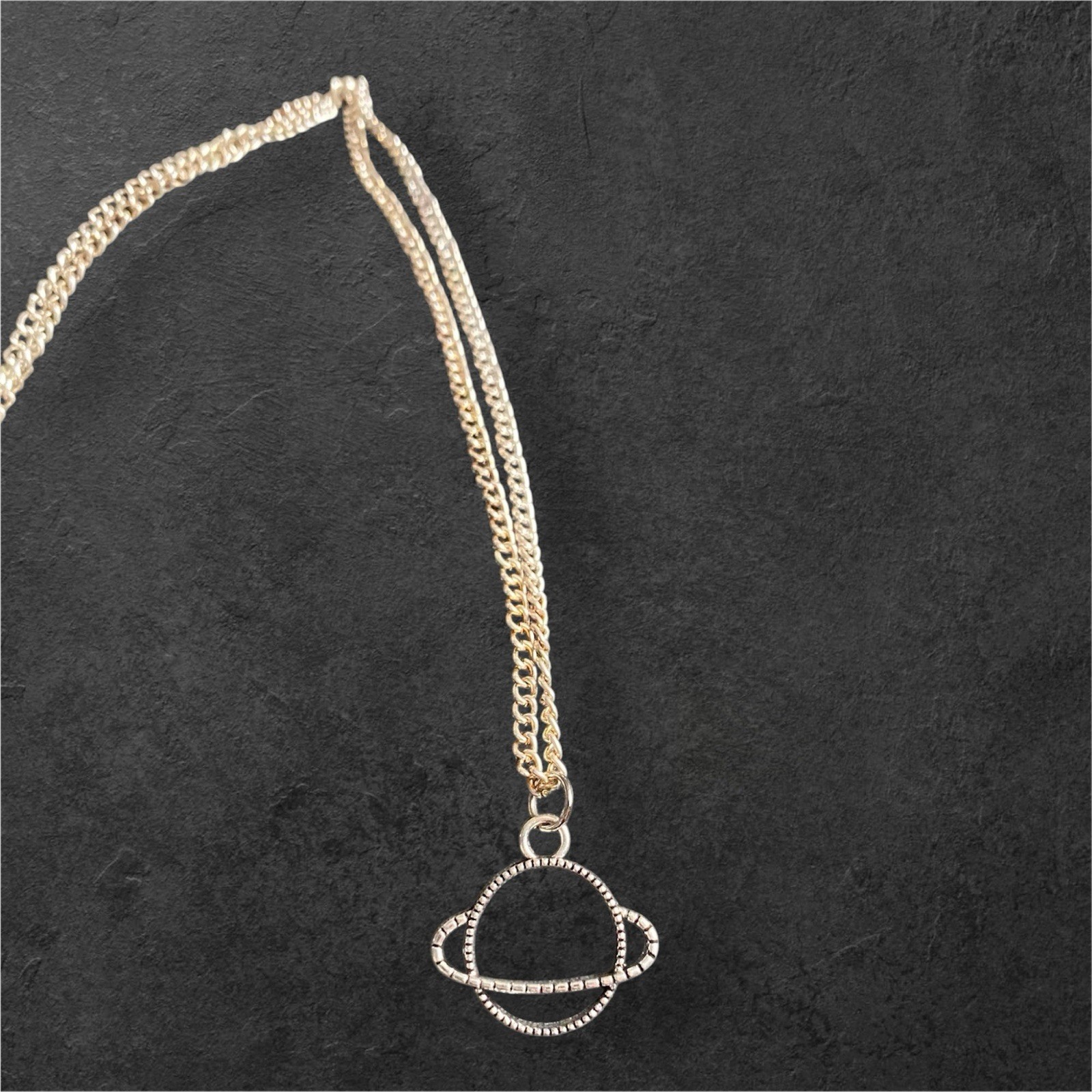 Handmade Silver Colored Saturn Planet Charm Adjustable Necklace