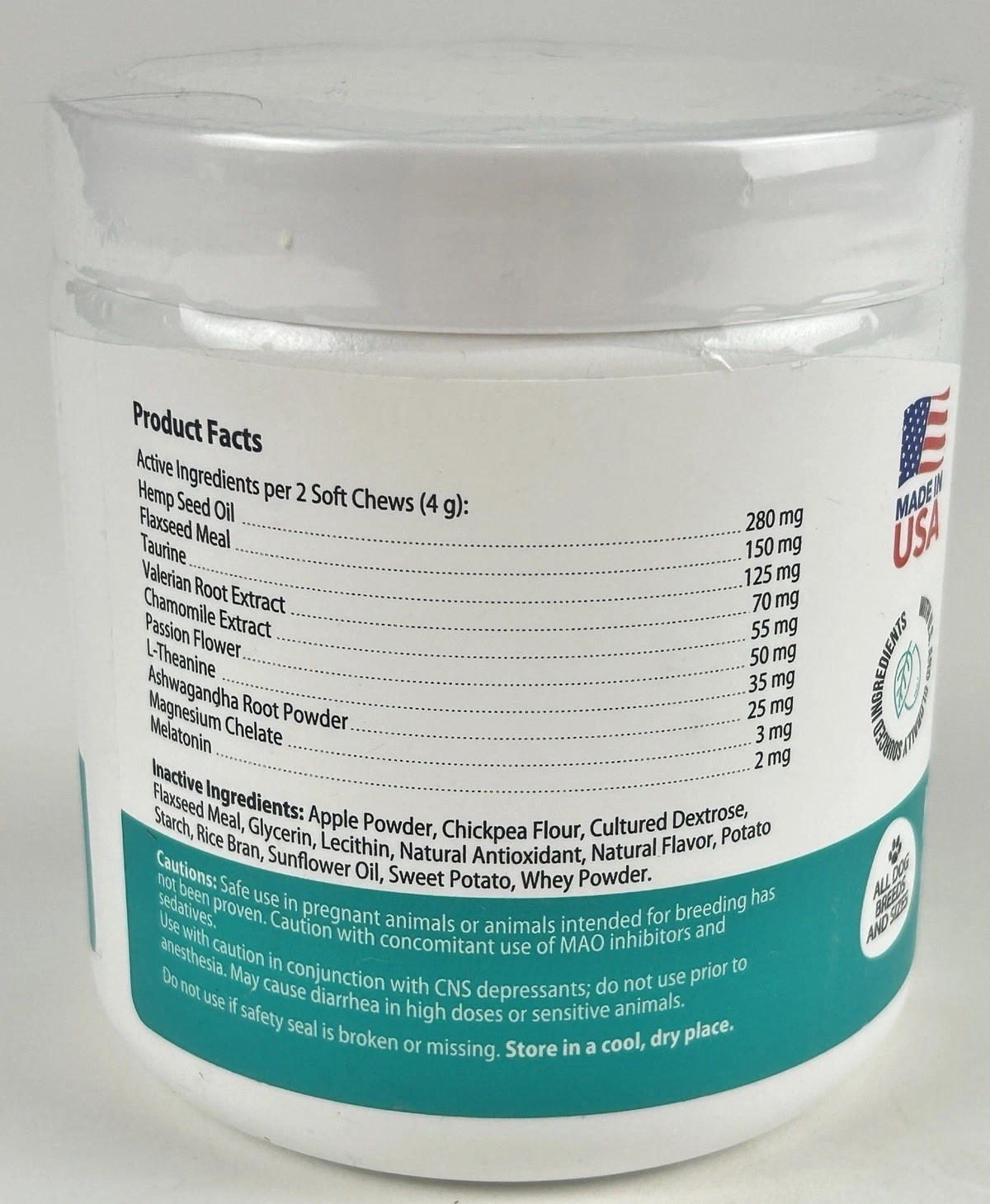Hemp Calming Chews for Dogs 9oz USA Made Chamomile Melatonin 120ct