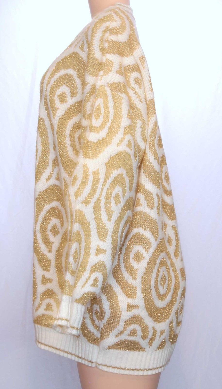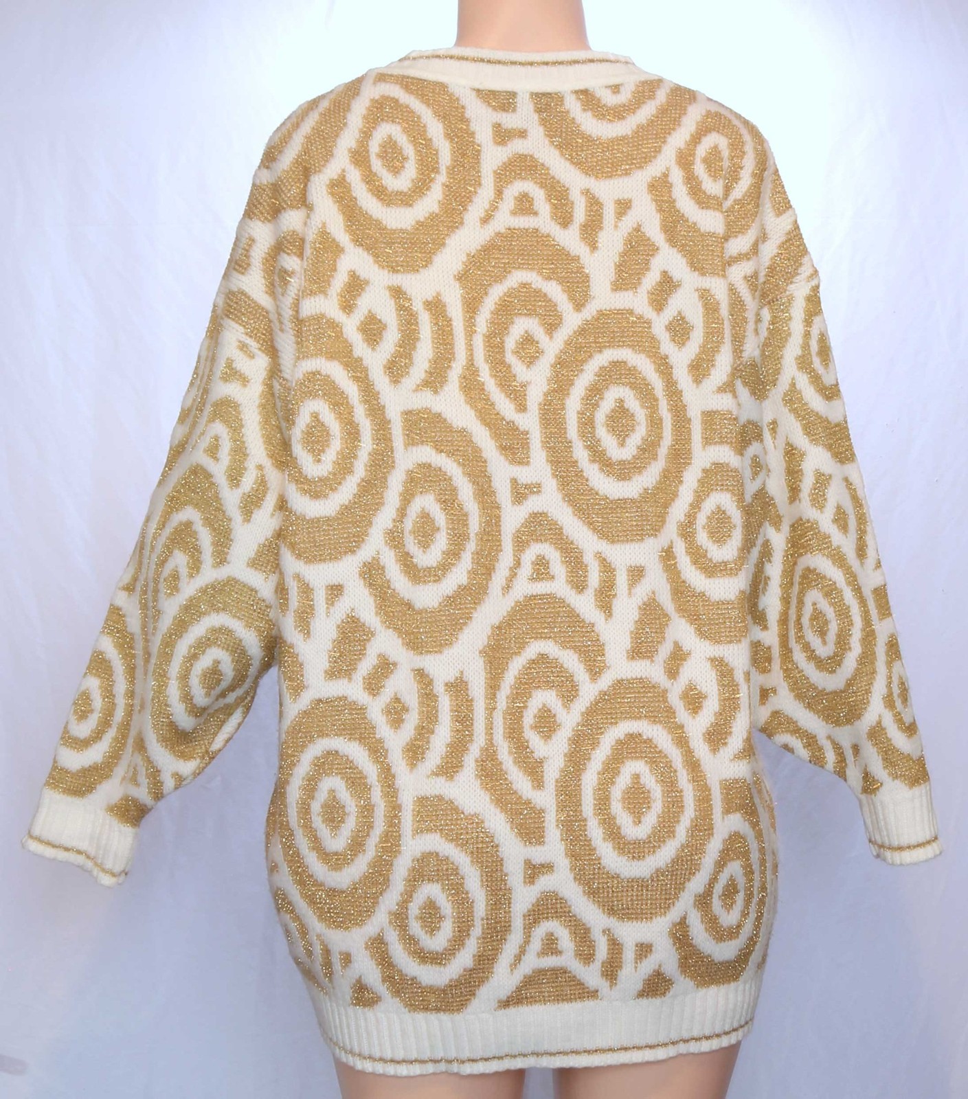 как выглядит 80s Vintage Sweater Sparkly Gold Lurex Geometric Holiday Christmas Apr s-ski XL фото