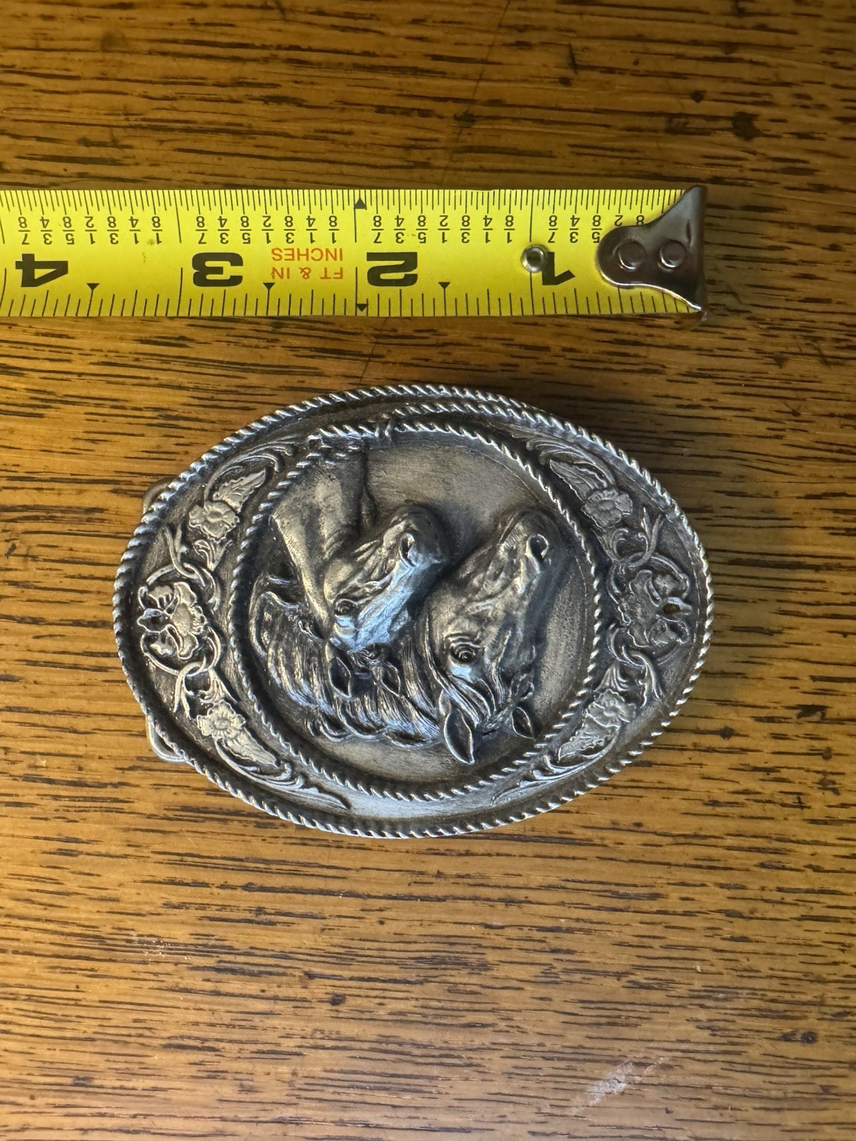 как выглядит Vintage 1991  Siskiyou Belt Buckle "Horses"  Made in USA фото