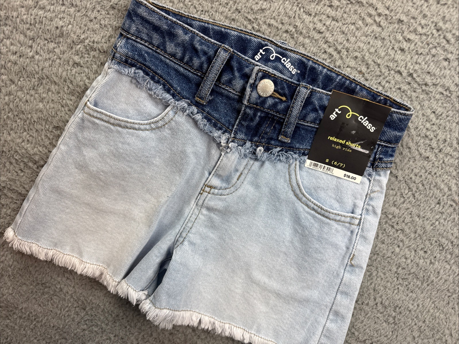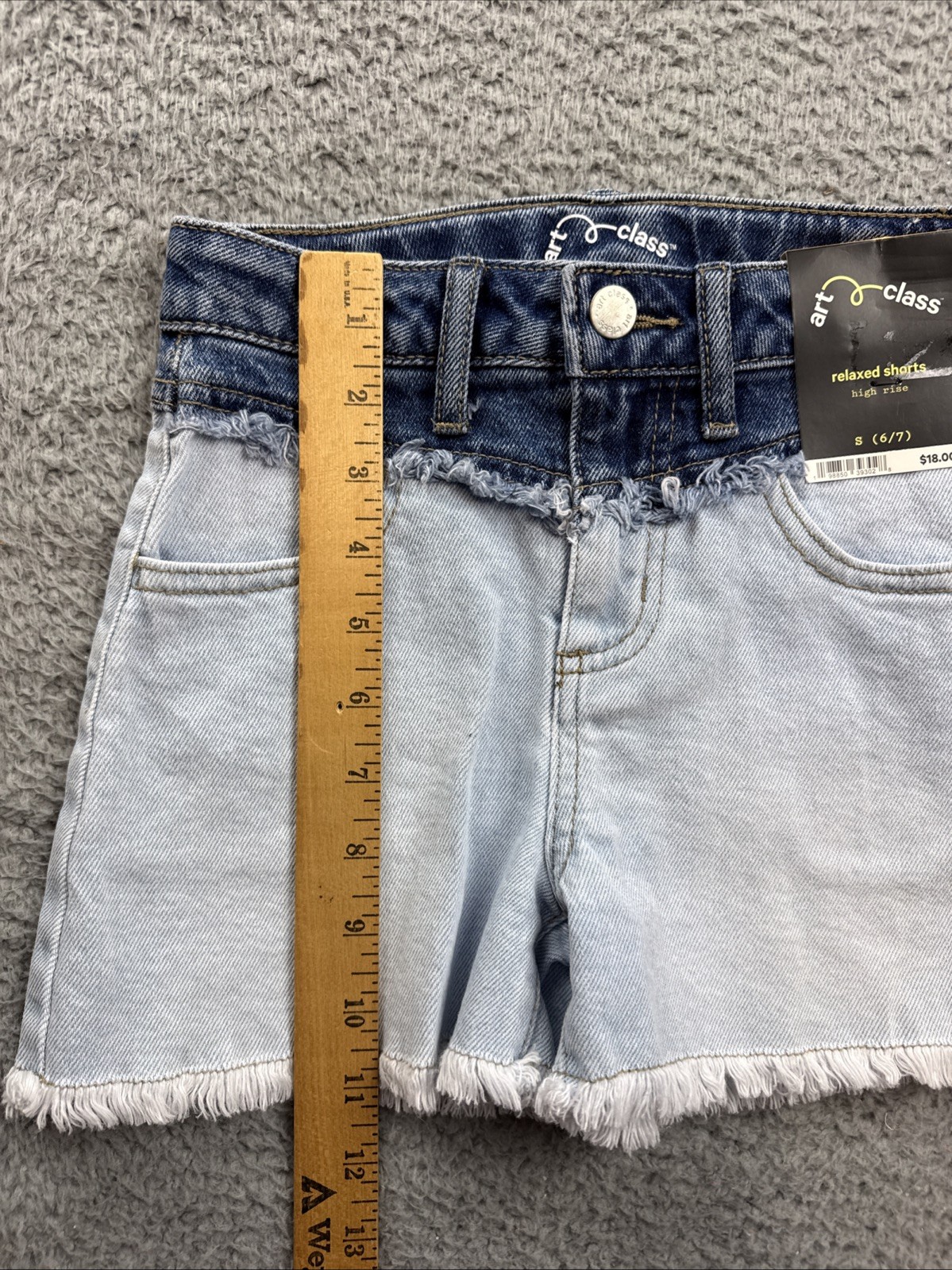 как выглядит Art Class Shorts Girls Small 6/7 High Rise A-Line Colorblock Denim Light Wash фото
