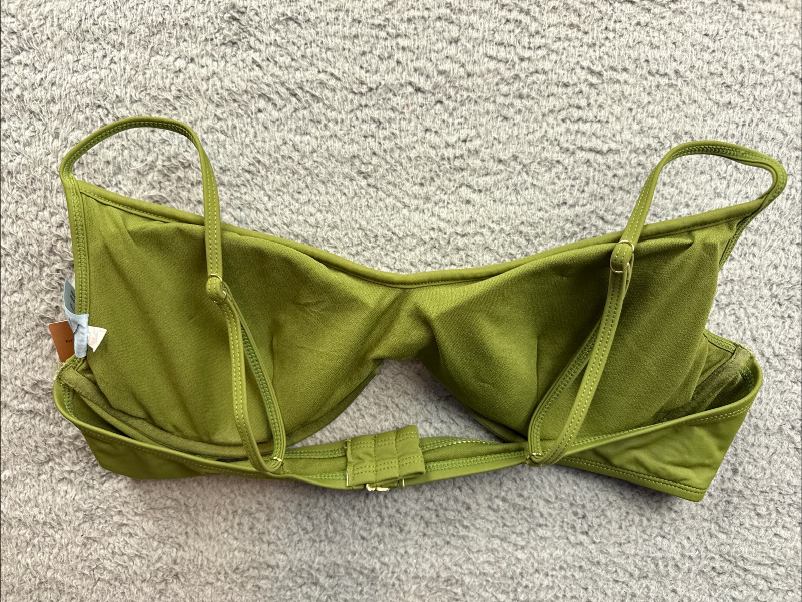 как выглядит Shade Shore Bikini Top Womens XL 16 Green Shirred Underwire Removable Pads фото