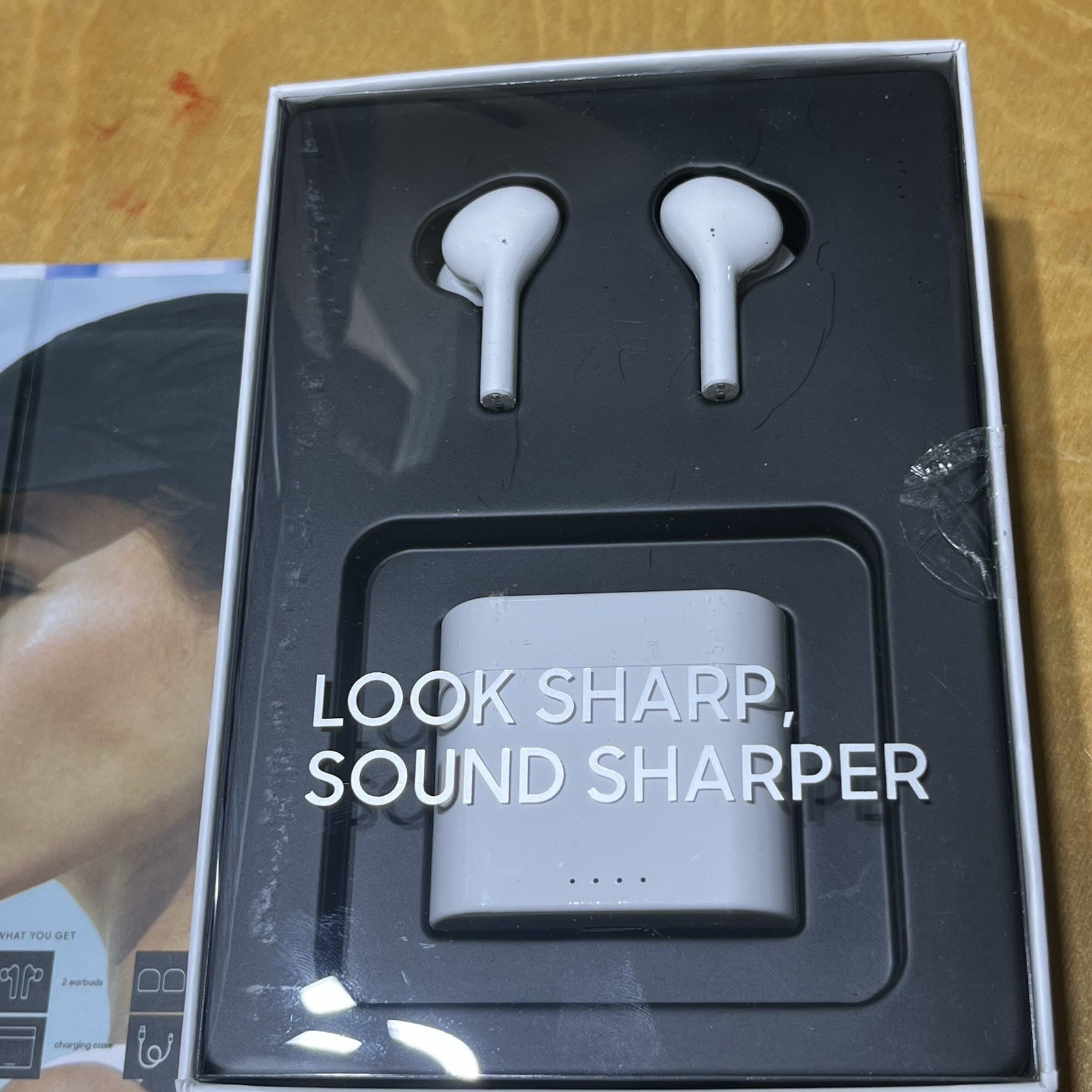 Sharper Image True Wireless Earbuds Qi and USB-C Charging Case White New in Box