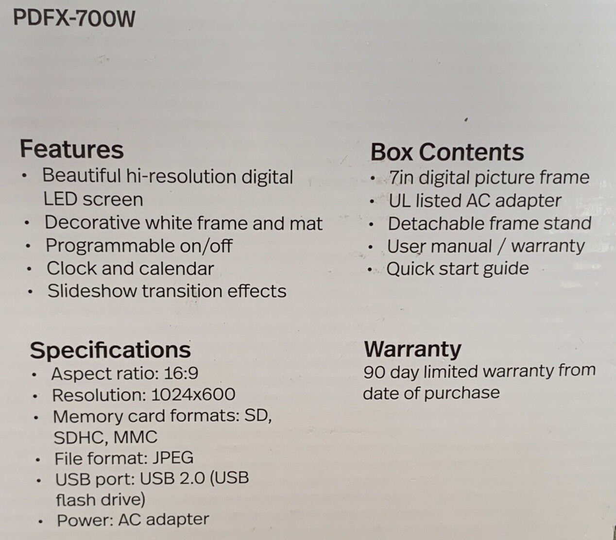 Polaroid PDFX-700W 7 Hi-Res Digital Picture Frame White Mat 1024x600 HD