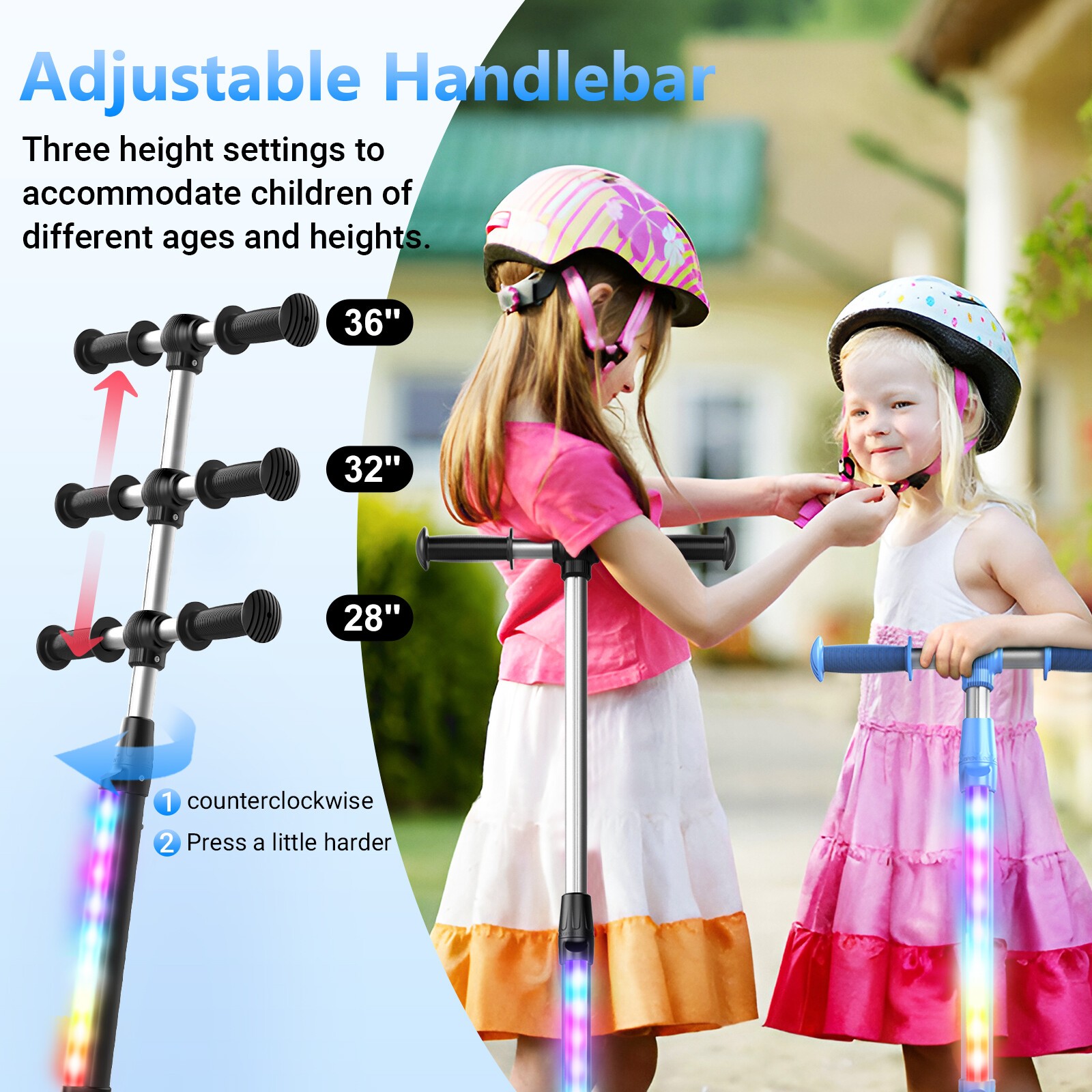 5.3 Solid Tires Wheel Electric Scooter Kick Scooter Adjustable Height for Kids