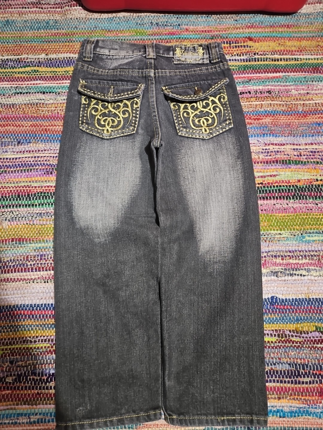 Vintage Y2K Karl Kani Embroidered Baggy Black Denim Kids Youth Jeans 7 23x20
