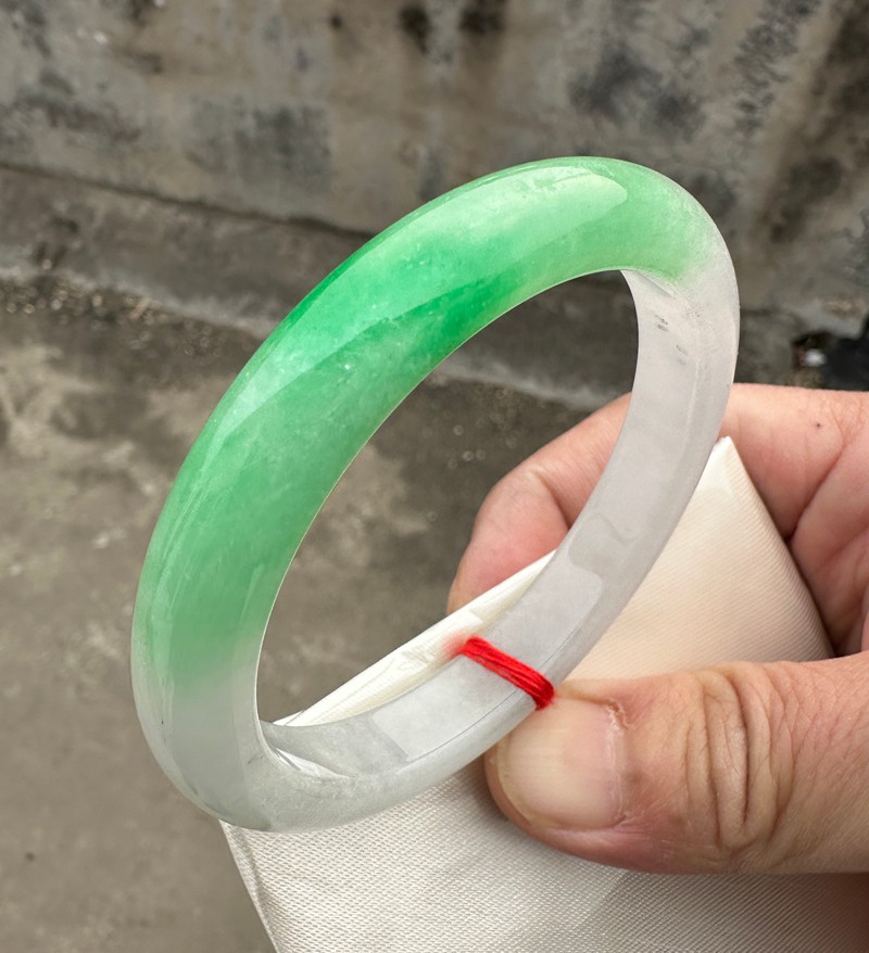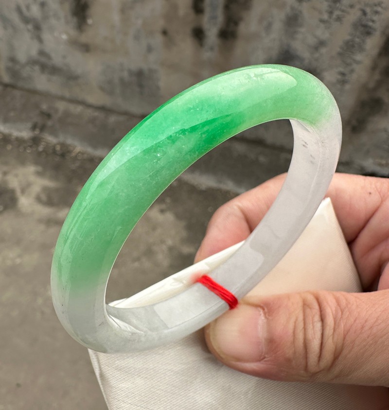 Certified Natural Grade AAA Ice Green Burmese Jade jadeite bracelet bangle 56MM