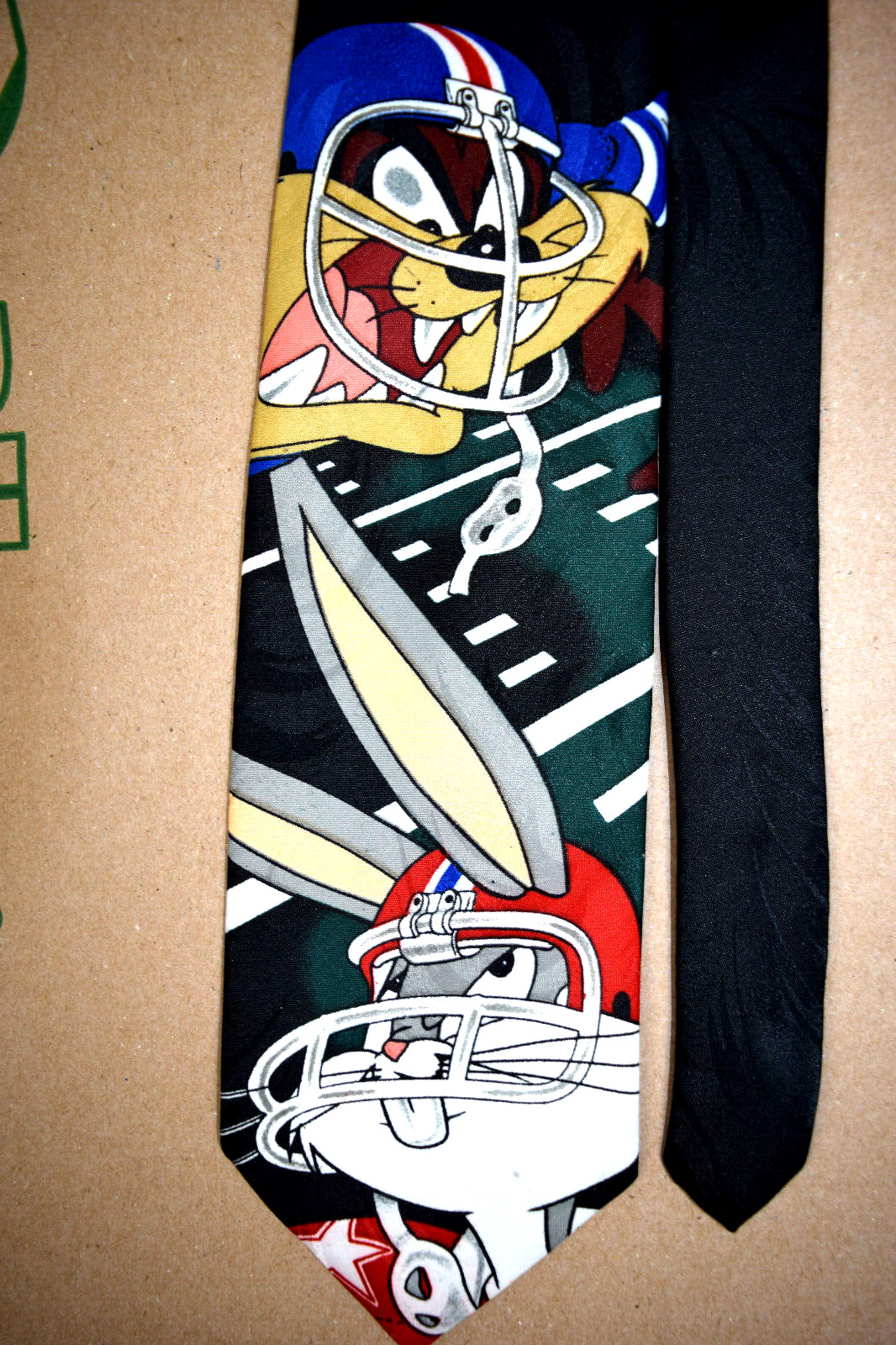 как выглядит Neck Tie VTG Looney Tunes Mania Bugs Bunny Taz Play Football 56.5 x 3.75" c.1996 фото