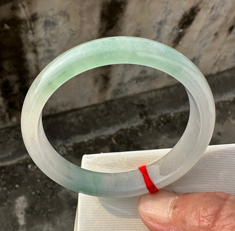 как выглядит Certified Natural Grade AAA Ice Green Burmese Jade jadeite bracelet bangle 56MM фото