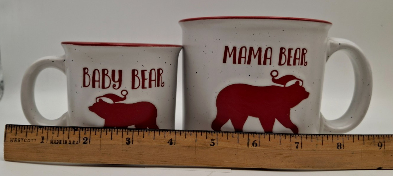 • Peppermint Pine Christmas Mugs Mama Bear Baby Bear Set of 2