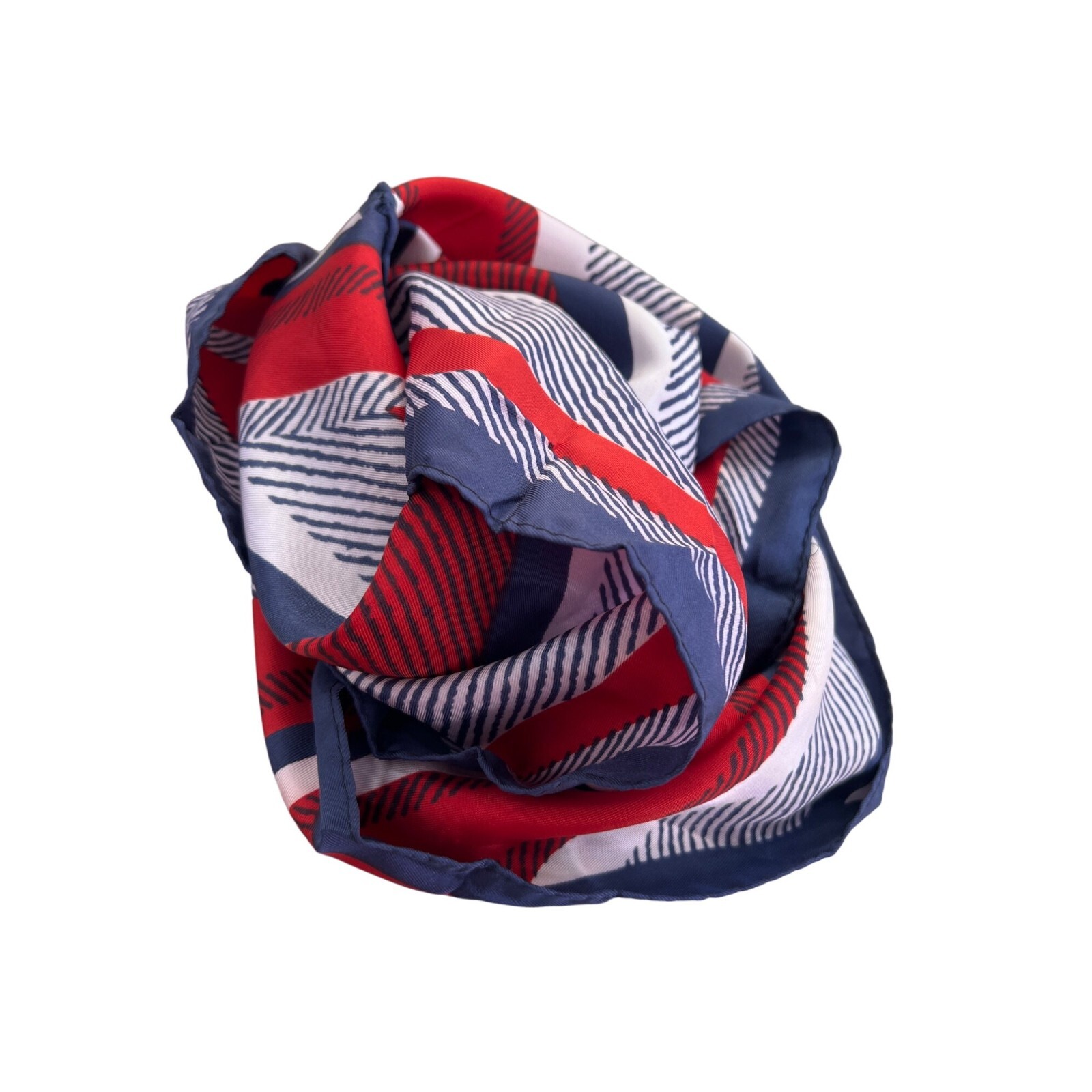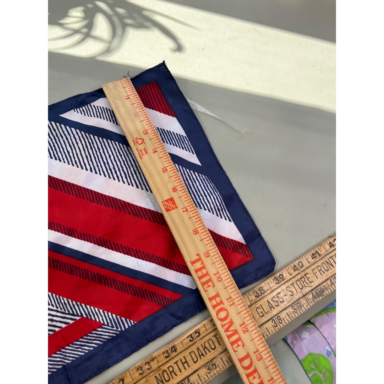 как выглядит Vintage Twill Hand Printed Scarf Lightweight Red Bue Acetate Geometic Print Boho фото