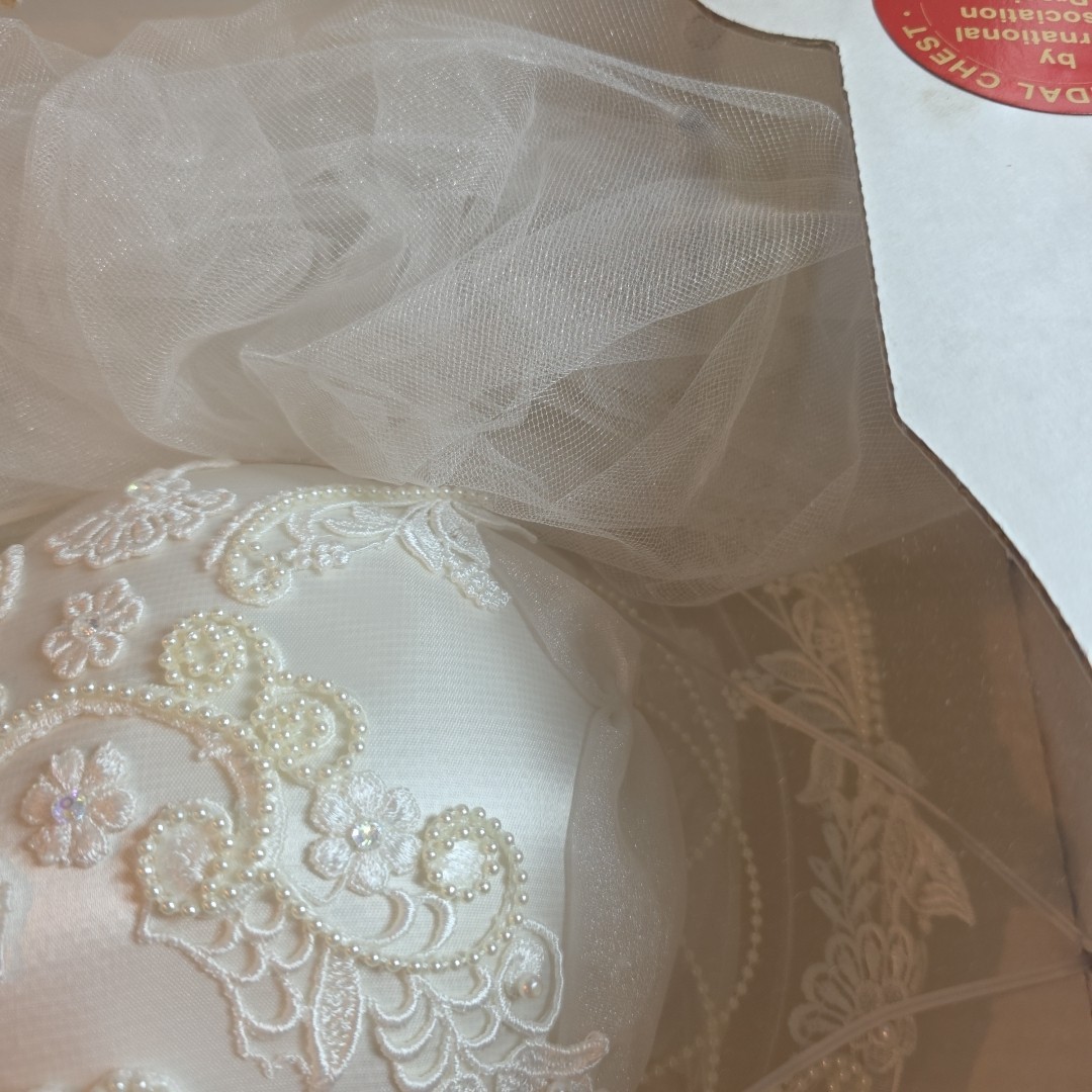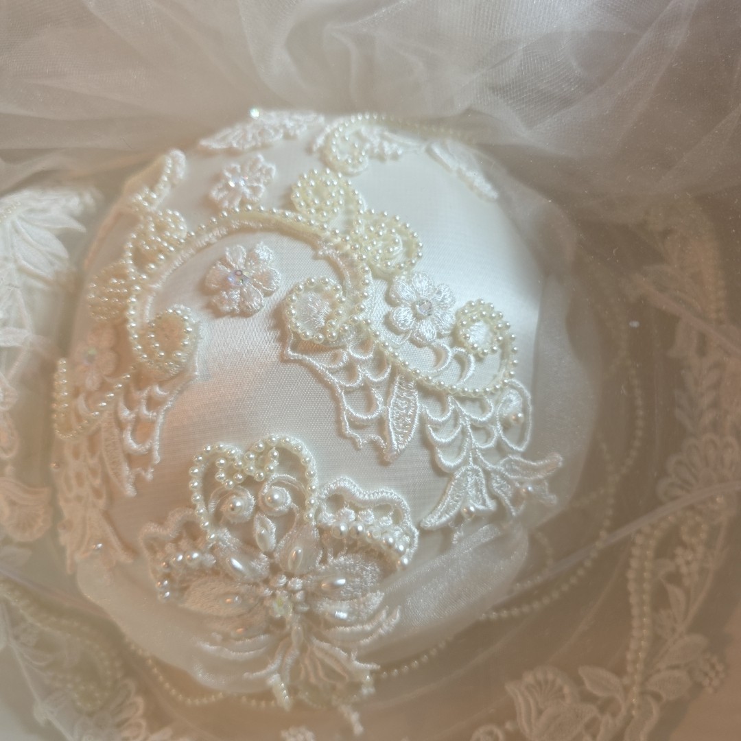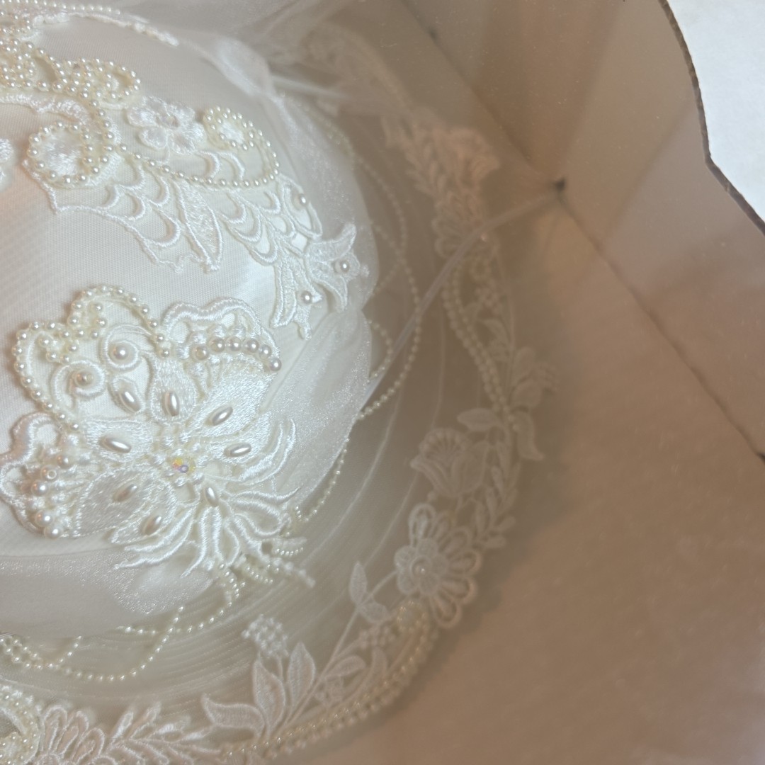 как выглядит Vintage Wedding Bridal Veil/ Hat With Floral Pearls And Intricate Design Sealed фото