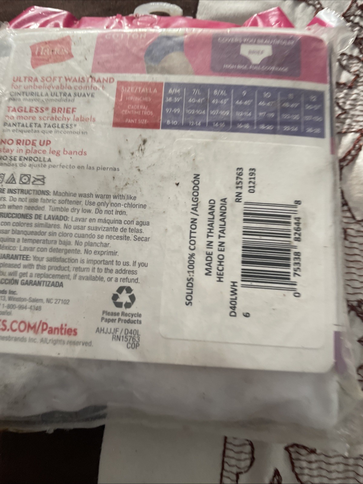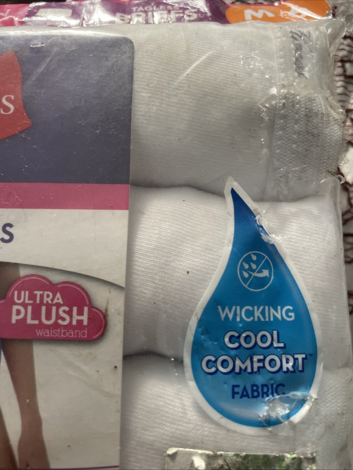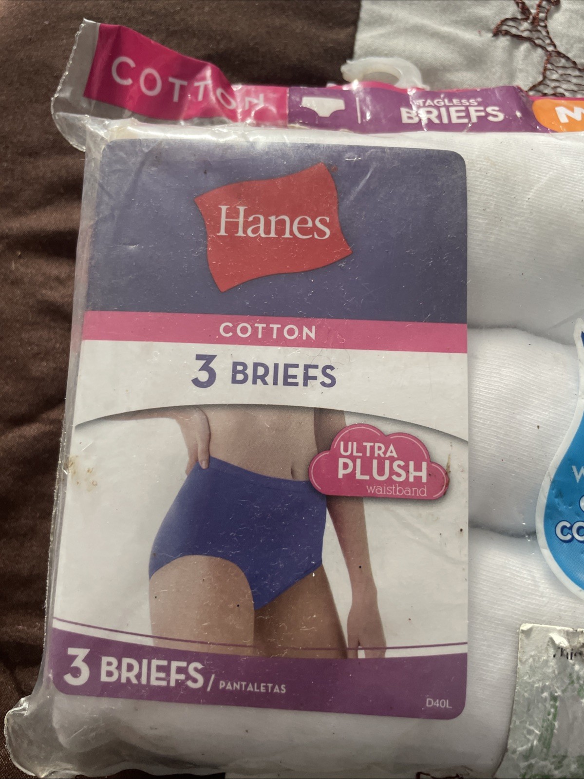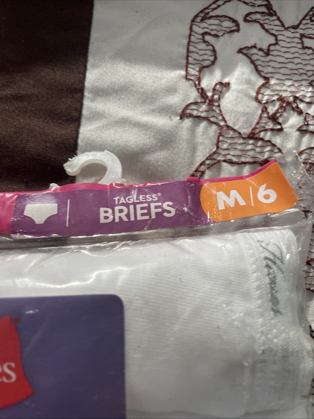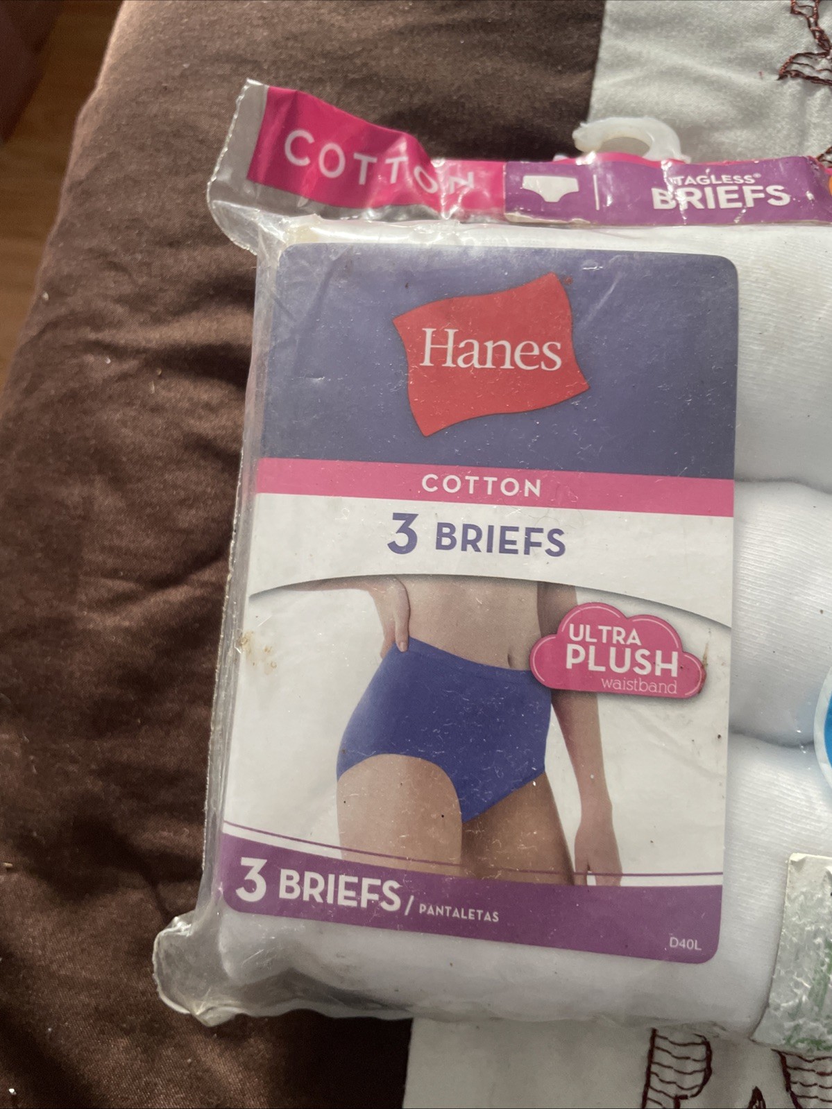 Size 6 Hanes Women's White Briefs Panty Underwear 3 Pack 100 Cotton