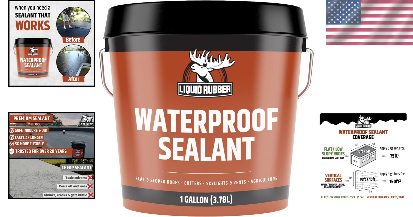 1 Gallon Waterproof Sealant - Flexible DIY Leak Repair for Roofs Foundations