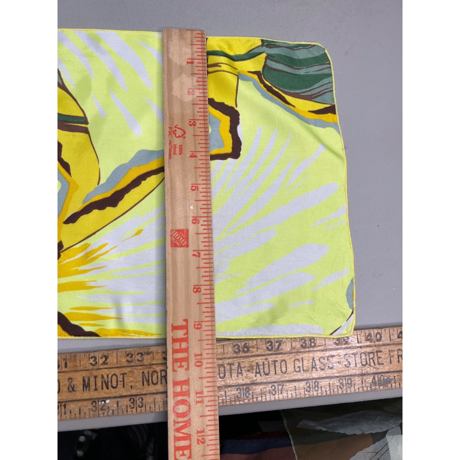 как выглядит Vintage Abstract Satin Scarf Rectangle Lightweight White Yellow Boho Oblong фото