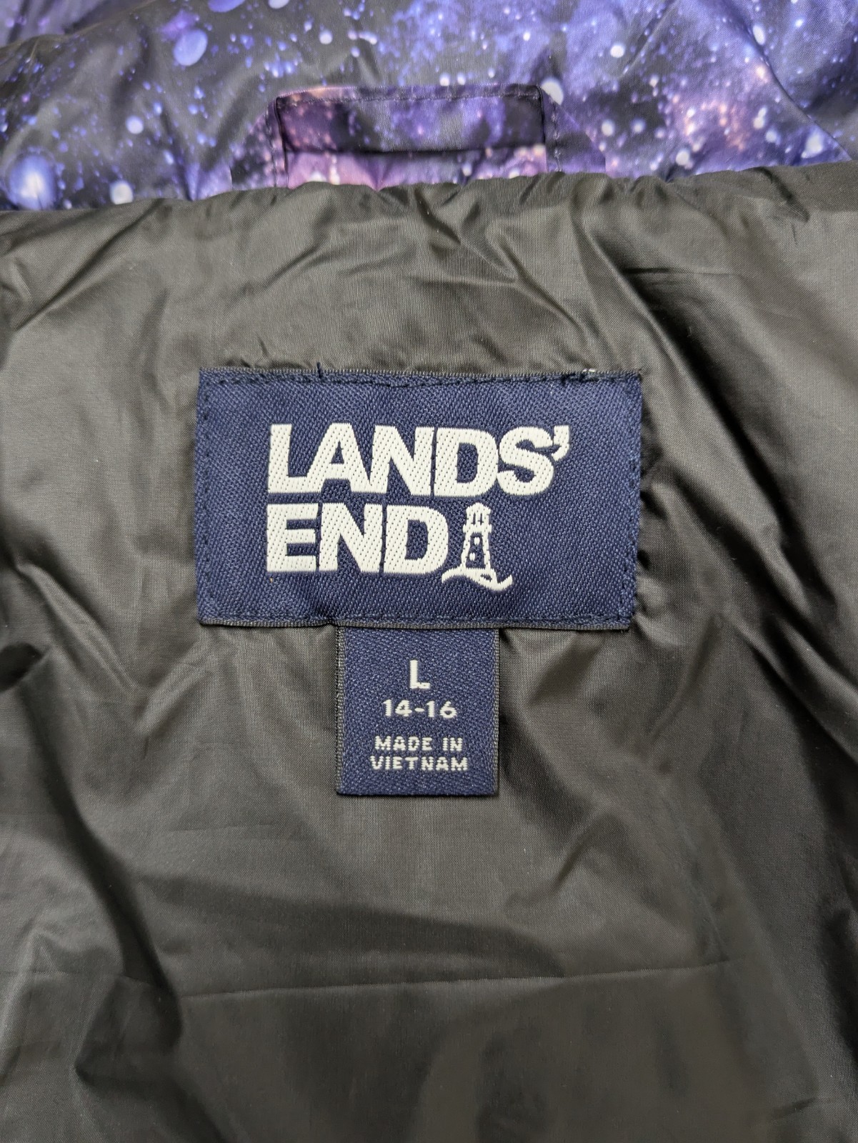 LANDS END Galaxy Puffer Vest ThermoPlume Galaxy Purple BIG KIDS Unisex