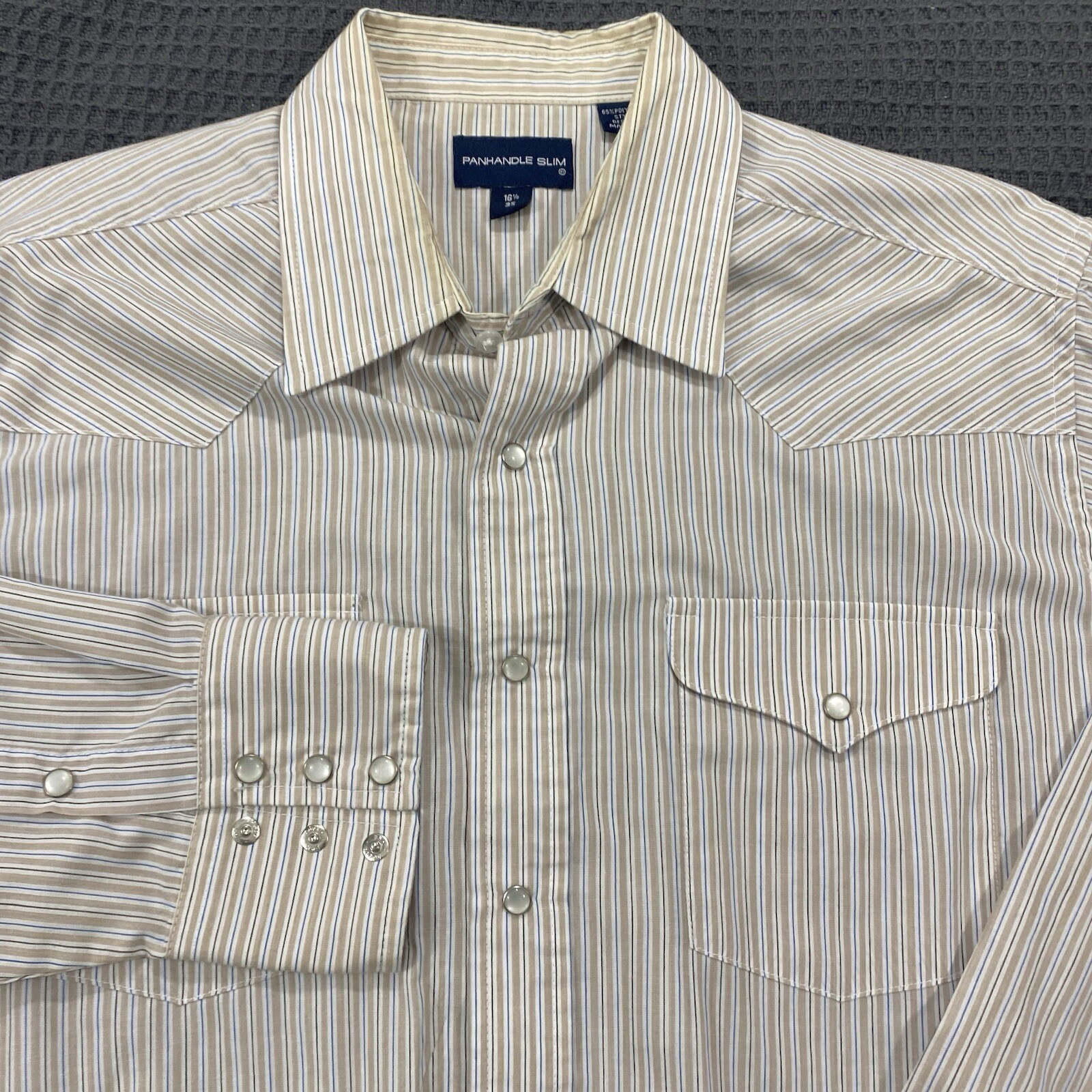 как выглядит Panhandle Slim Shirt Mens 16.5 35 Brown Balanced Stripe Yoke Pearl Snap Western фото