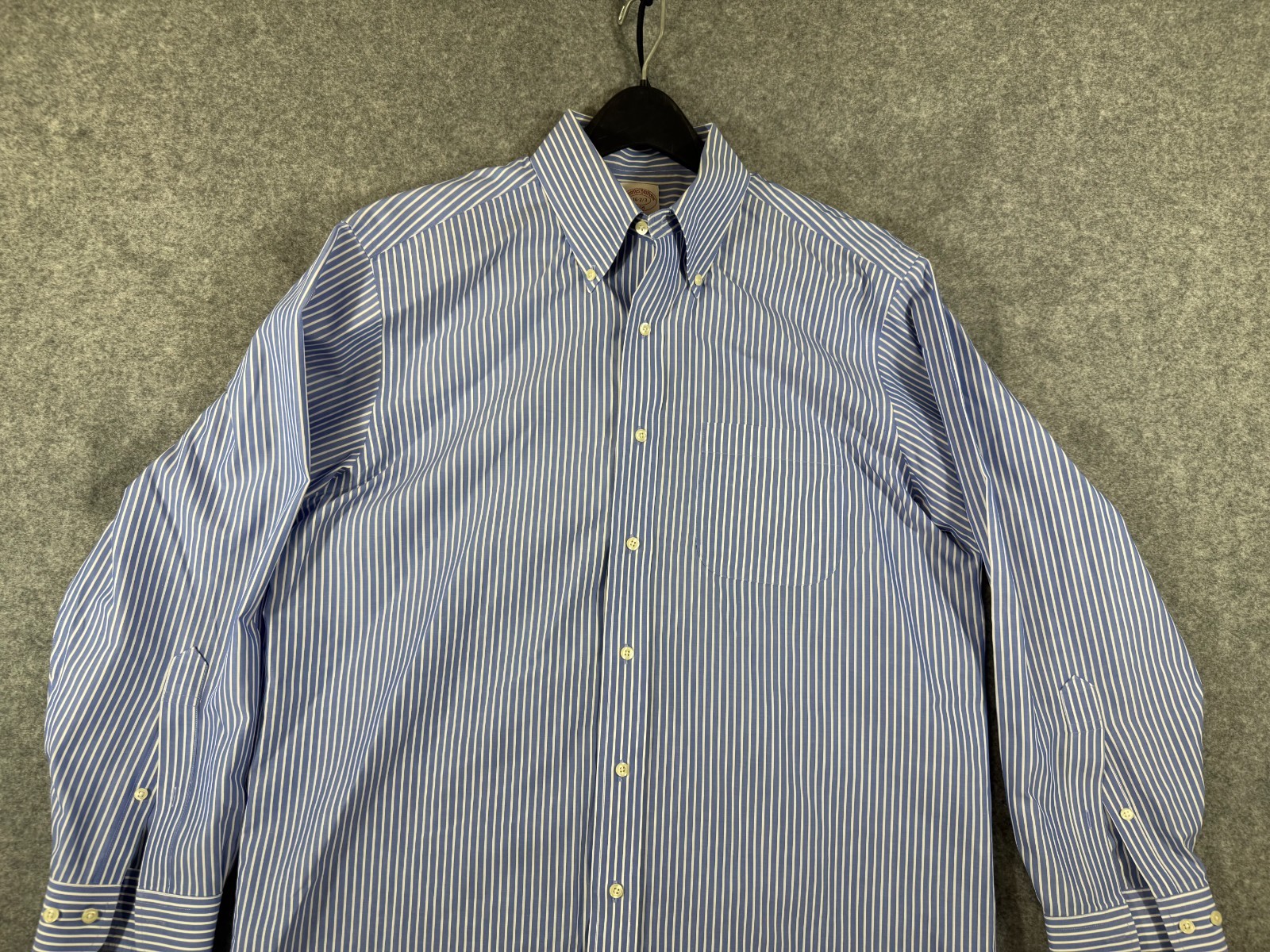 как выглядит Brooks Brothers 346 Dress Shirt Mens 16-2/3 Blue Striped Long Sleeve Outdoor фото
