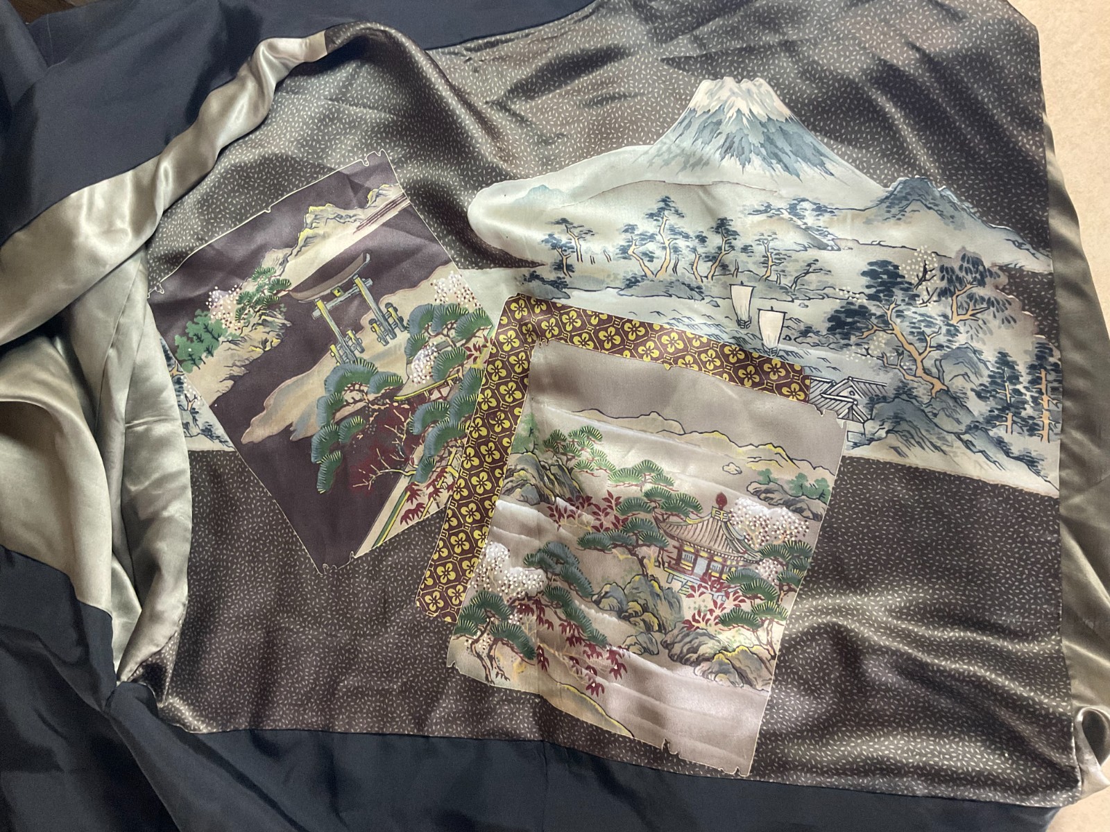 как выглядит Vintage Black Silk Haori Kimono w/Traditional Mt Fuji and Landscape Size Medium фото