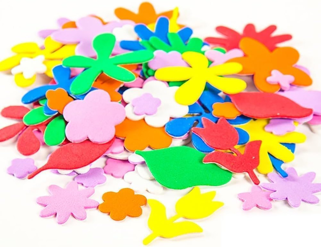 как выглядит 100-Piece Reusable Foam Stickers Set - Assorted Flowers Shapes for DIY Crafts, C фото