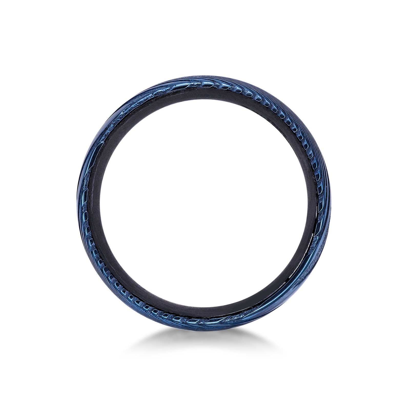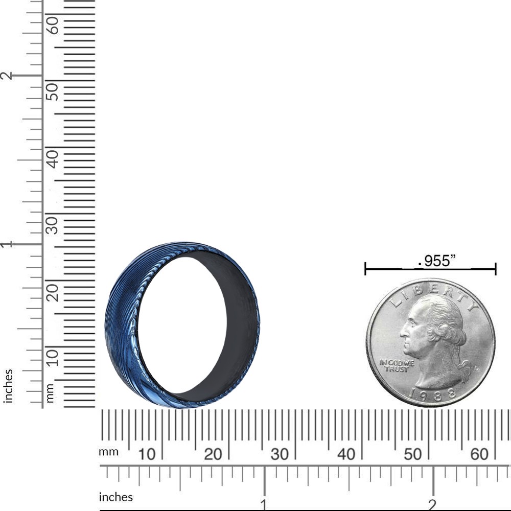 Men's Blue Damascus Steel Ring with Carbon Fiber Sleeve