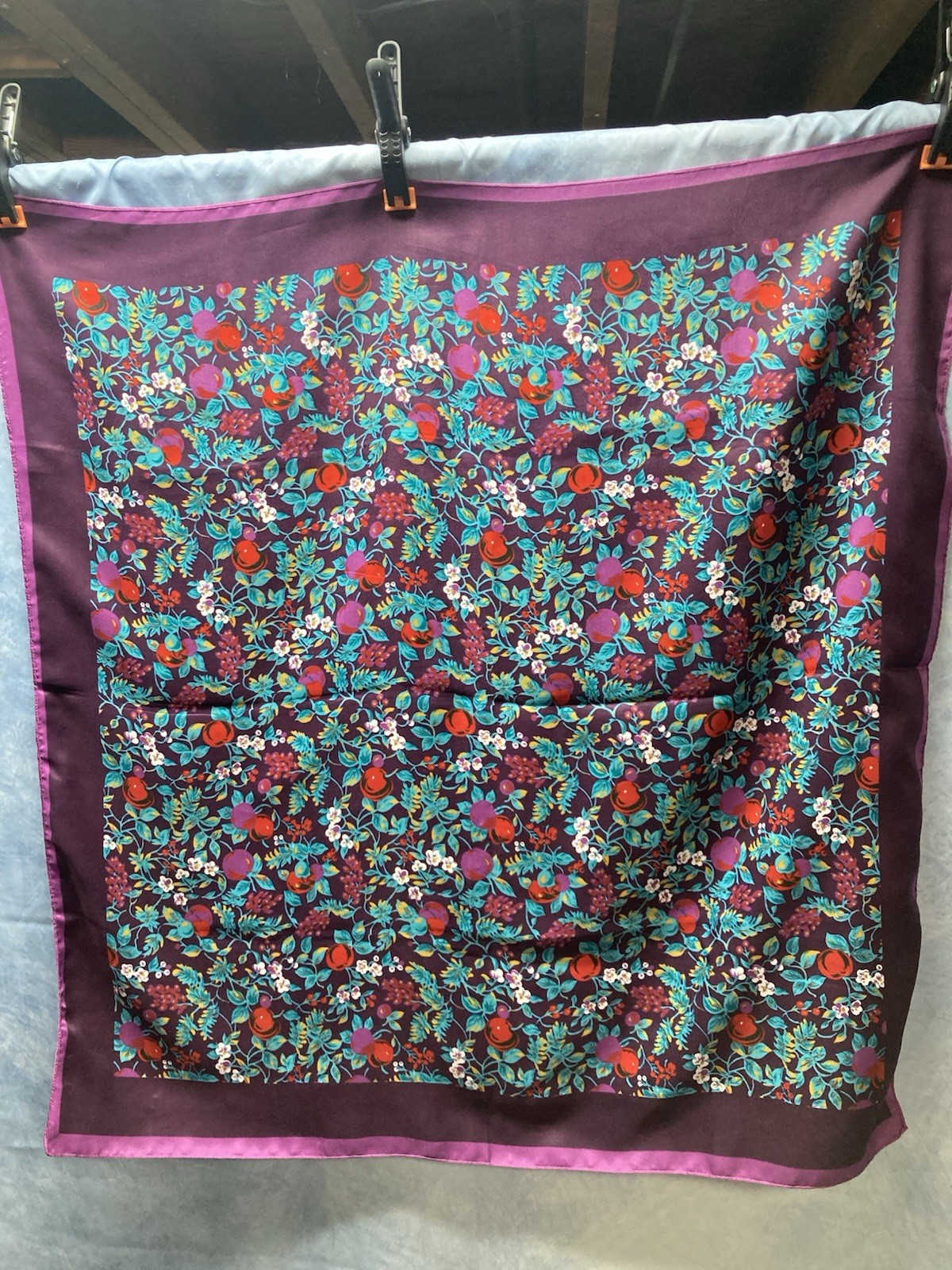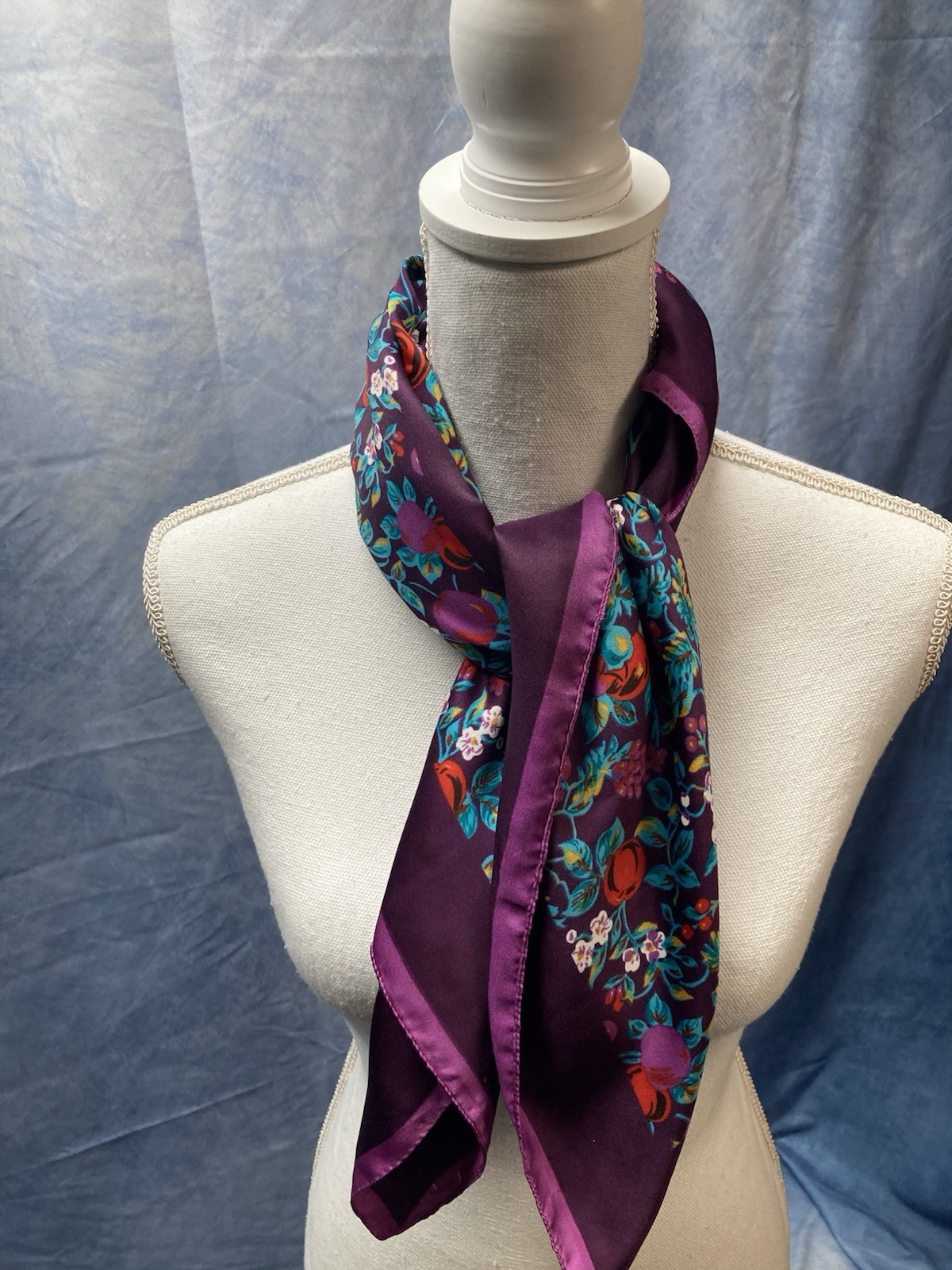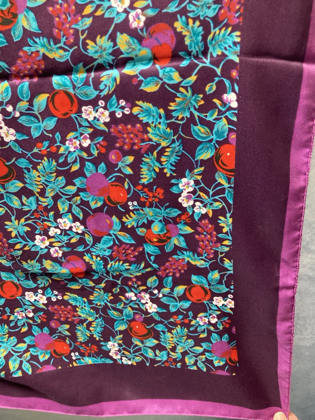 как выглядит Gorgeous Vintage 1970s Vibrant Purple Floral Women s Scarf Polyester 30x30 фото
