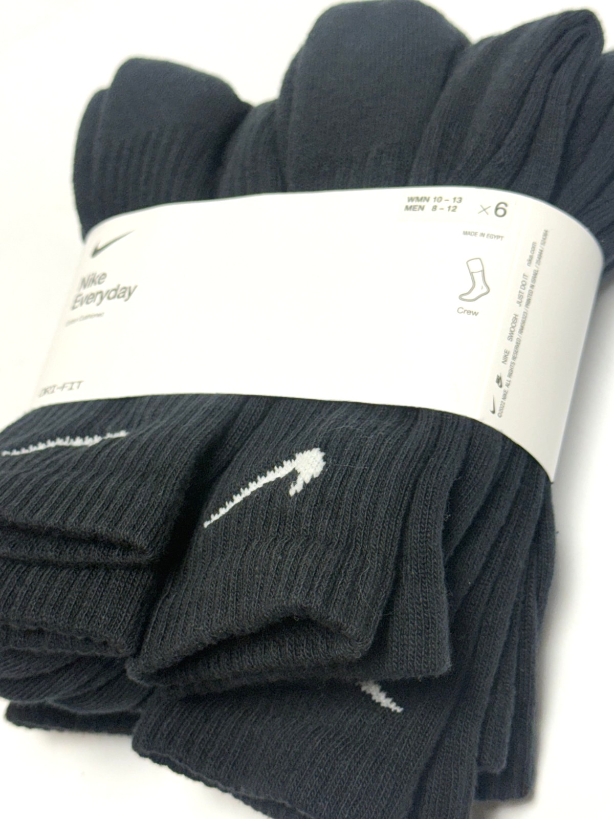 AUTHENTIC Nike Men's Everyday Training Crew Socks 6-PAIRS BLACK LARGE 8-12