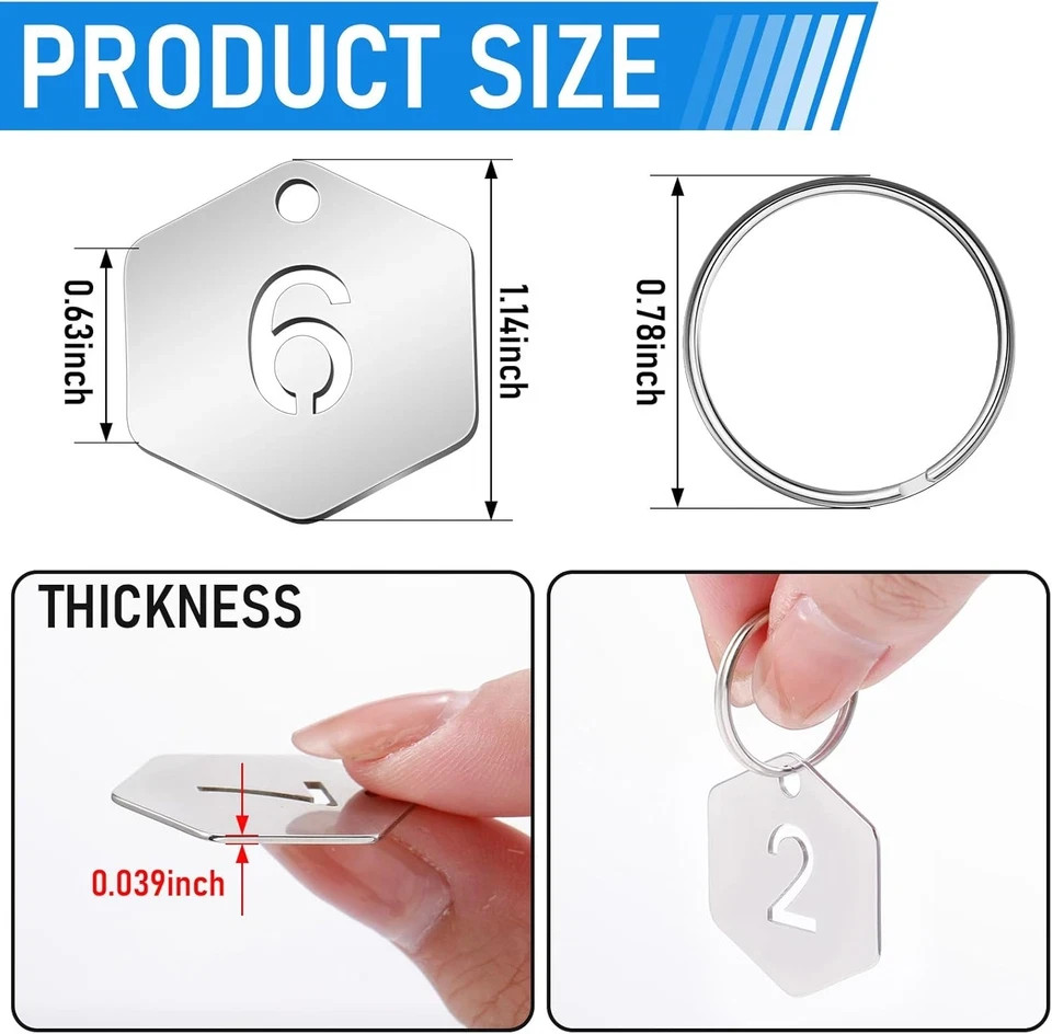 50 Pcs Hollowed Stainless Steel Number Tags Metal Numbered Key Number ID Tags wi