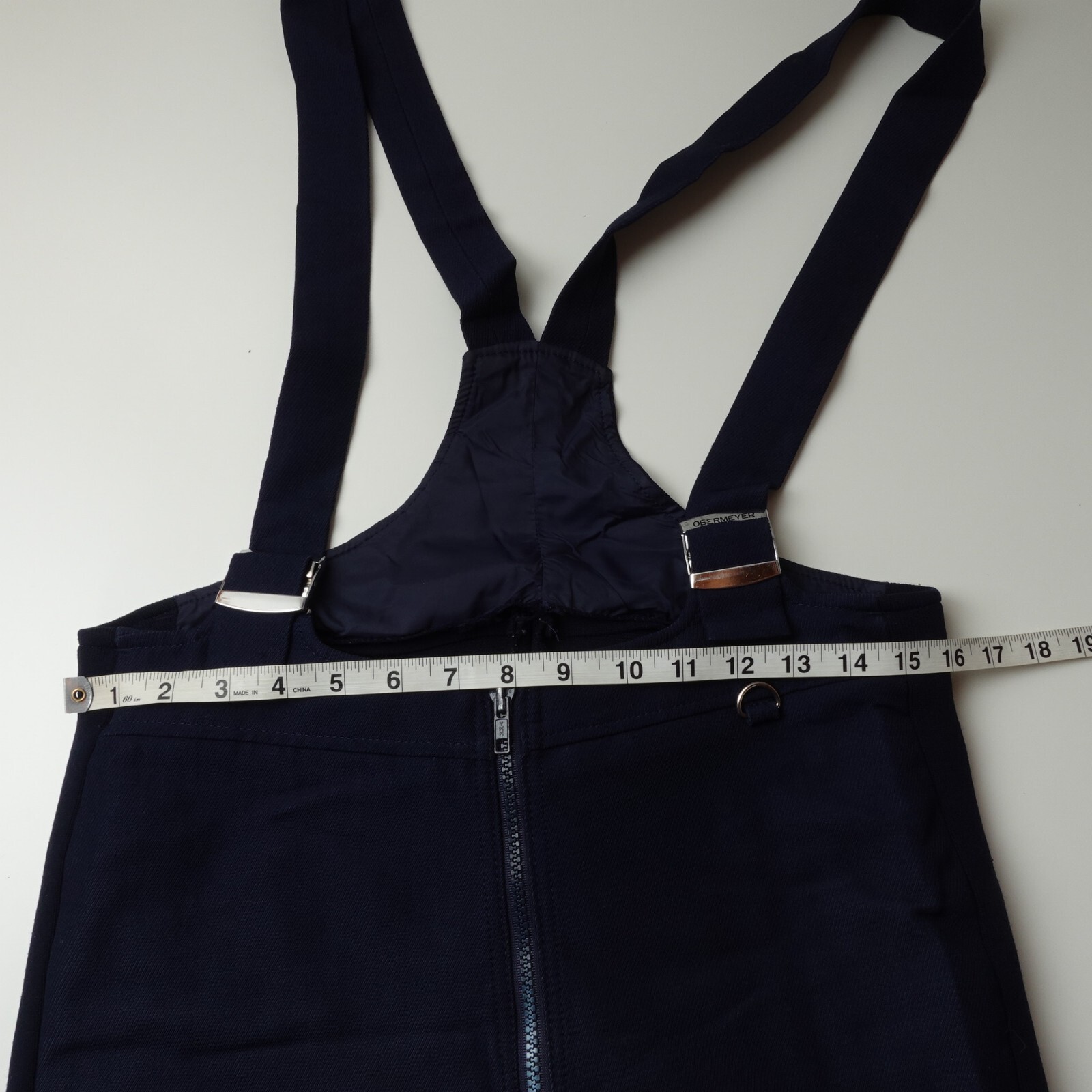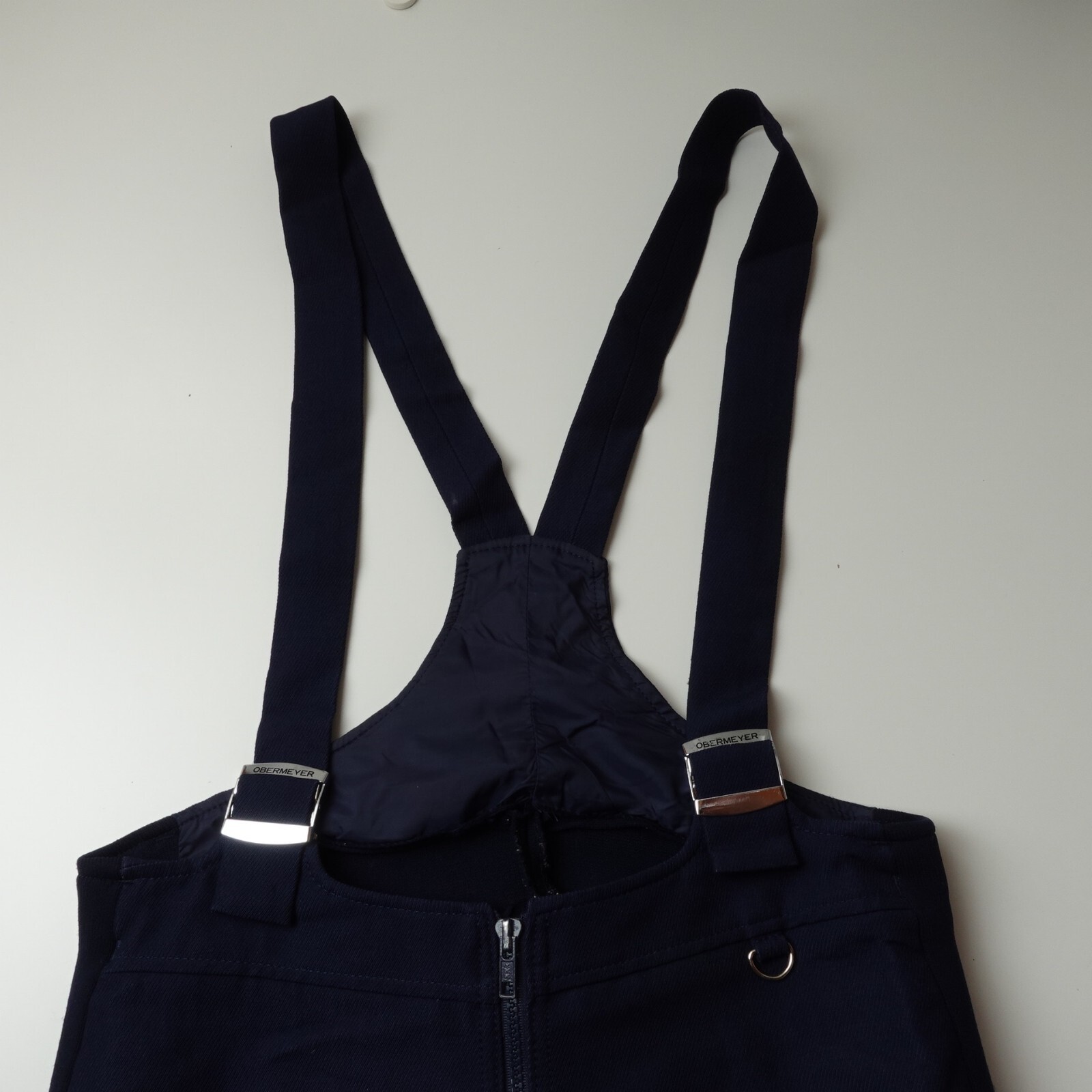 Vintage 80s Obermeyer Ski Bibs Blue Wool Nylon Size 32 Mens SR Knee Pad Navy