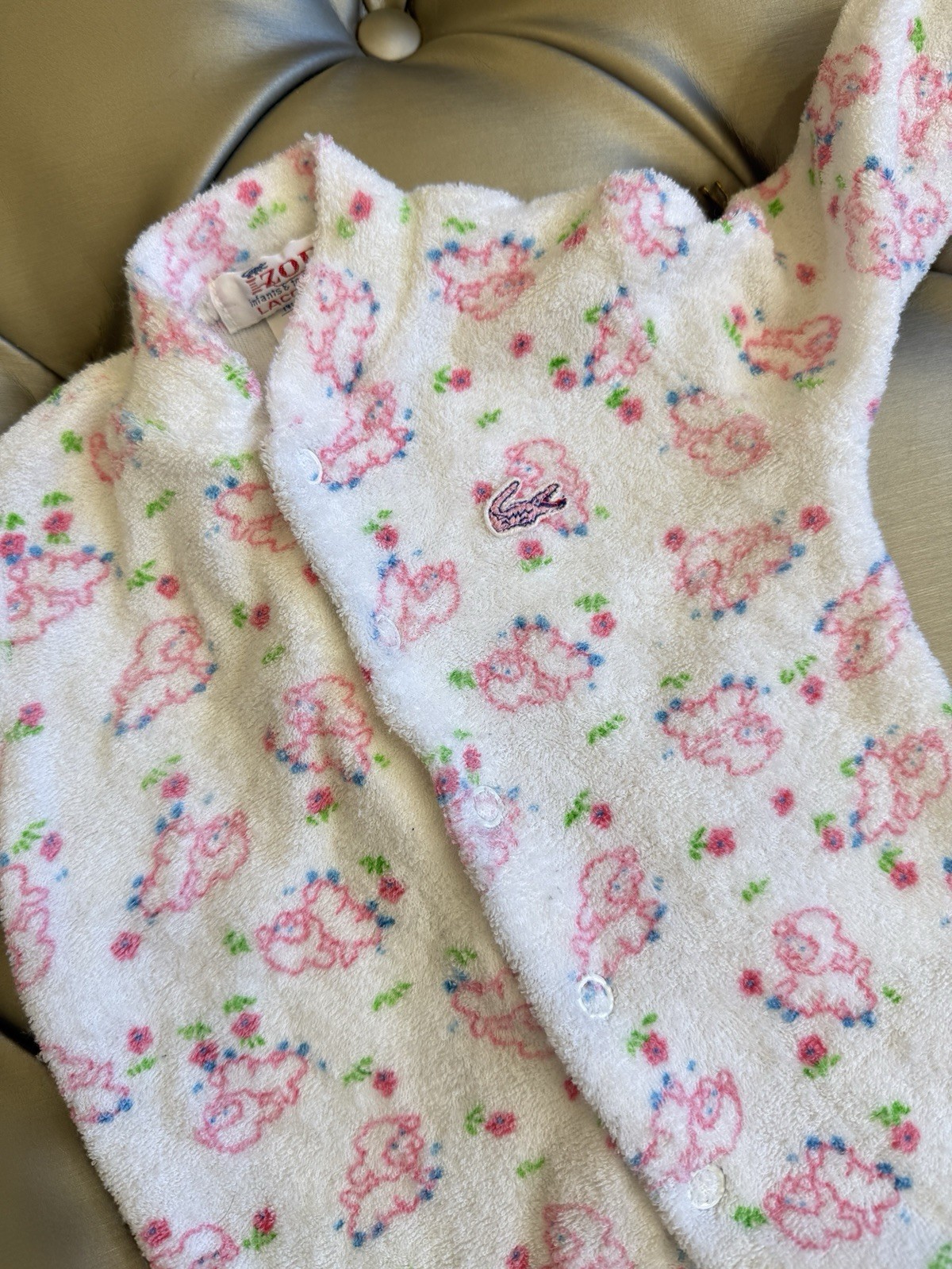 VINTAGE BABY LACOSTE IZOD TERRY SHEEP ZIP JAMMIES NEWBORN 0-3 MONTHS