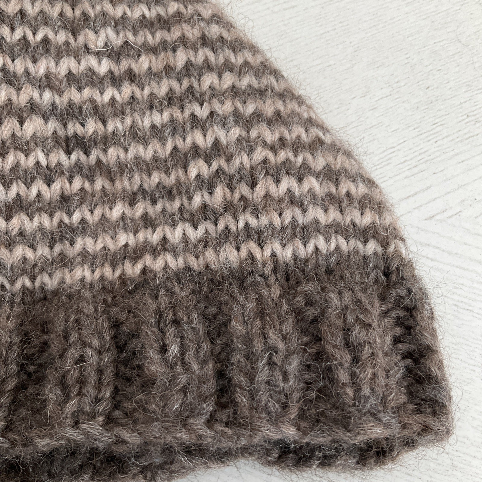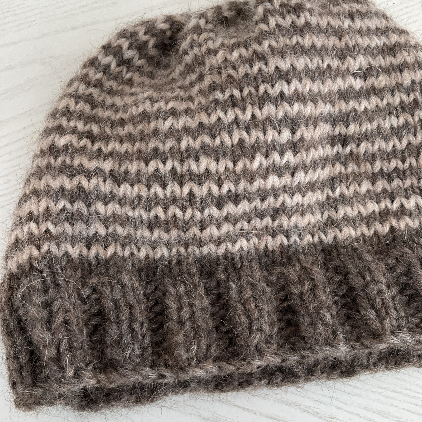 New Handmade Knit Boy's or Girl's Winter Beanie Cap Brown Beige Zig Zag Size S/M