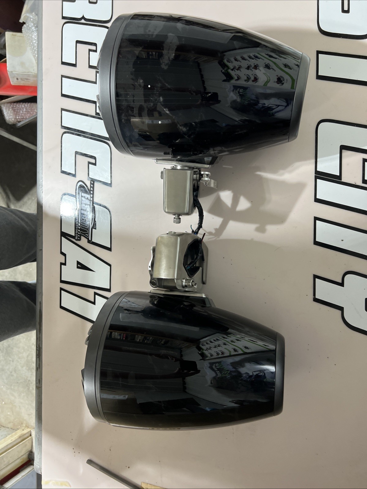 как выглядит KICKER 45KMTC8 8" Loaded Marine Wake Tower Enclosures 45KM84L Speakers Black фото